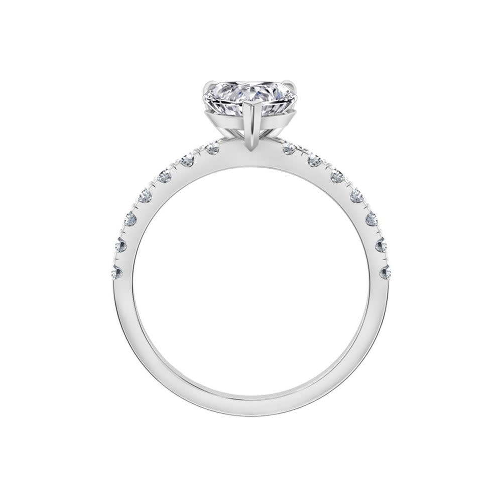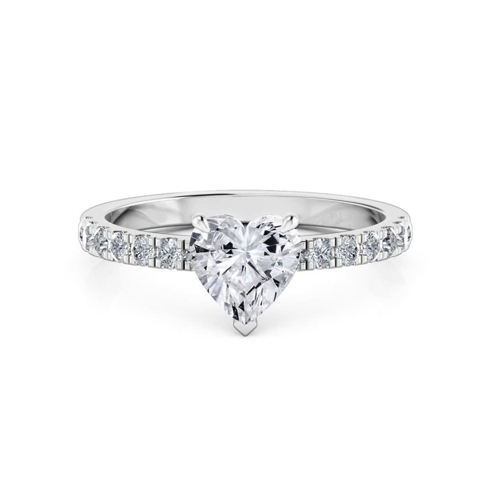 This women's engagement ring,has a captivating heart shaped diamond at the centre. Nestled securely within the four claw setting, the heart shaped diamond takes center stage, radiating its brilliance and beauty from every angle. The diamonds along the shank serve as a dazzling complement, enhancing the ring's allure and adding an extra layer of elegance. All Temple and Grace jewellery is beautifully crafted to the highest standards and is made at our jewellery workshop directly by us (skilled jewellery craftsmen). This is why you can save over 40% when compared to high-street retail prices. We also offer a lifetime warranty and unmatched 100 day returns. You can shop online or book an appointment to visit our jewellery boutiques in Sydney, Melbourne, Brisbane, Perth and Adelaide.