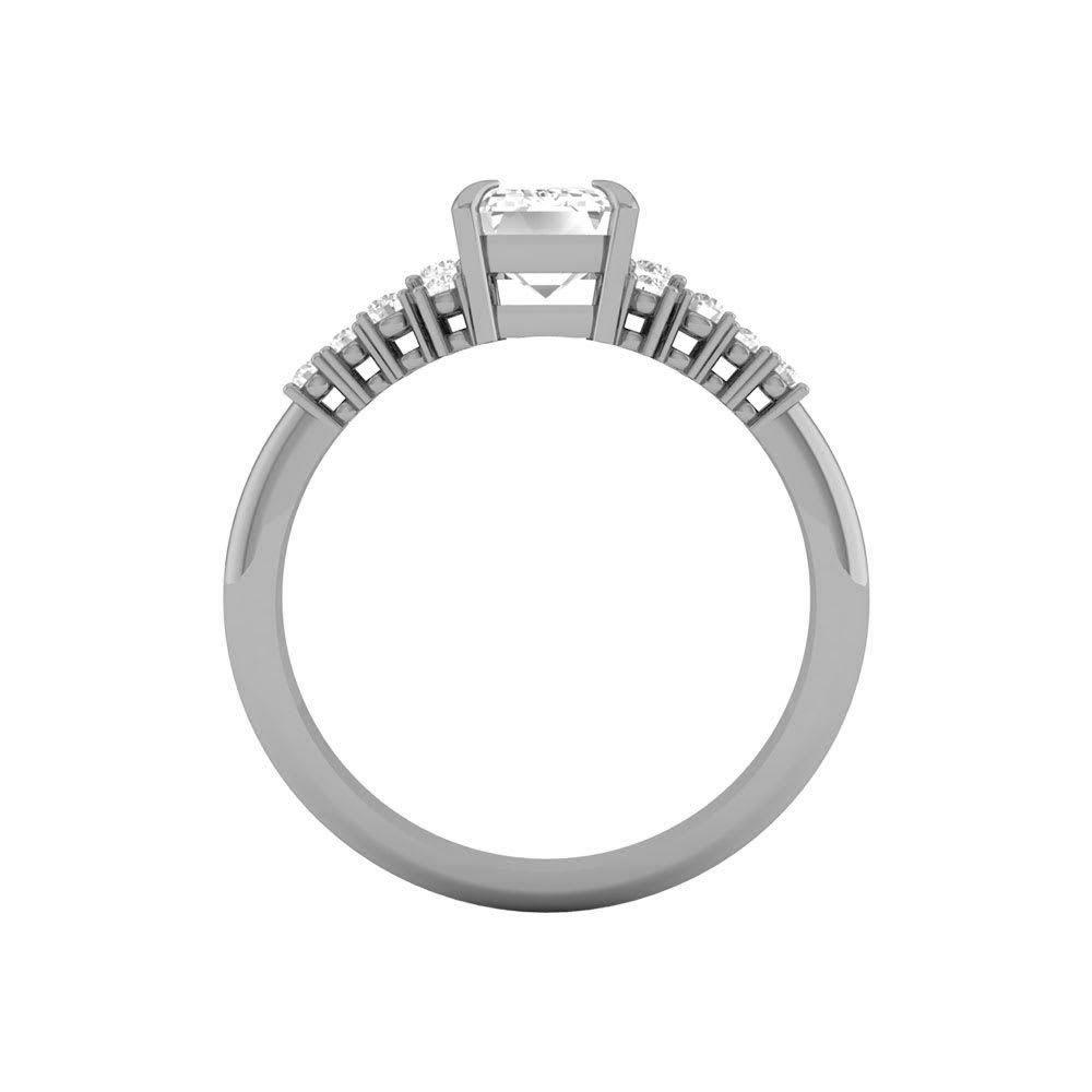 The focal point of this stunning women's ring is an alluring emerald shaped diamond, firmly held in a classic four prong setting. Round brilliant stones create an exciting pattern that emerges on either side of the central diamond. It is the ideal accessory for any special occasion owing to its polished shanks, which ensure a snug fit. All Temple and Grace jewellery is beautifully crafted to the highest standards and is made at our jewellery workshop directly by us (skilled jewellery craftsmen). This is why you can save over 40% when compared to high-street retail prices. We also offer a lifetime warranty and unmatched 100 day returns. You can shop online or book an appointment to visit our jewellery boutiques in Sydney, Melbourne, Brisbane, Perth and Adelaide.