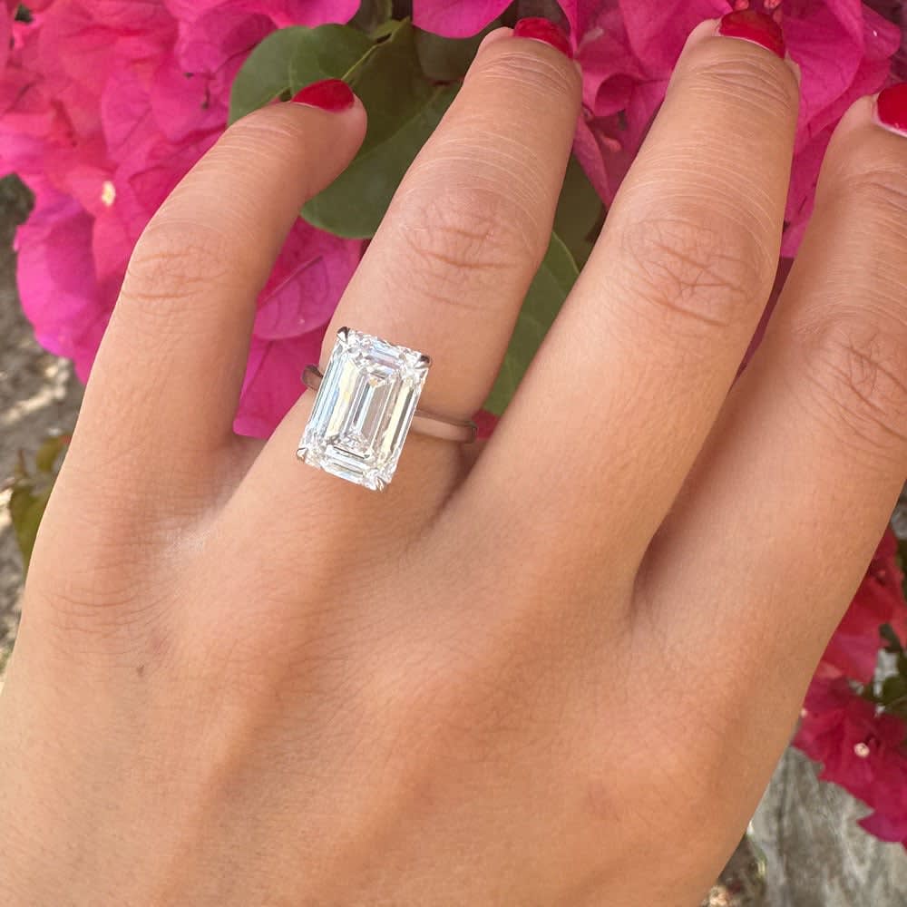 A stunning and royal Emerald cut 8ct Lab grown diamond. This is a forever ring any woman would adore to have. A statement piece for an Engagement ring. The diamond has the elegant emerald cut which gives it sophistication and royalty. The diamond is colour F and clarity VS1, XX and no fluorescence. Made with the excellent craftsmanship of our experienced jewellers. Available in white, yellow and rose gold. Ask our professional sales advisors for assistance.