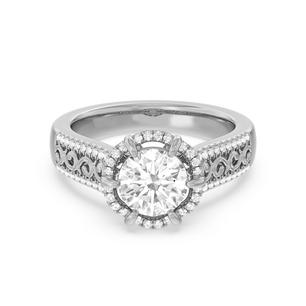 This women's engagement ring features a lab grown round brilliant diamond as it's centre piece, which is set in a six prong setting, which is surrounded by a dazzling diamond pave halo that enhances the stone's brilliance and size. It's shanks has a fluid filigree design that adds a touch of elegance and sophistication. The filigree design is bordered by sparkling diamonds that add even more glamour to it. All Temple and Grace jewellery is beautifully crafted to the highest standards and is made at our jewellery workshop directly by us (skilled jewellery craftsmen). This is why you can save over 40% when compared to high-street retail prices. We also offer a lifetime warranty and unmatched 100 day returns. You can shop online or book an appointment to visit our jewellery boutiques in Sydney, Melbourne, Brisbane and Perth.