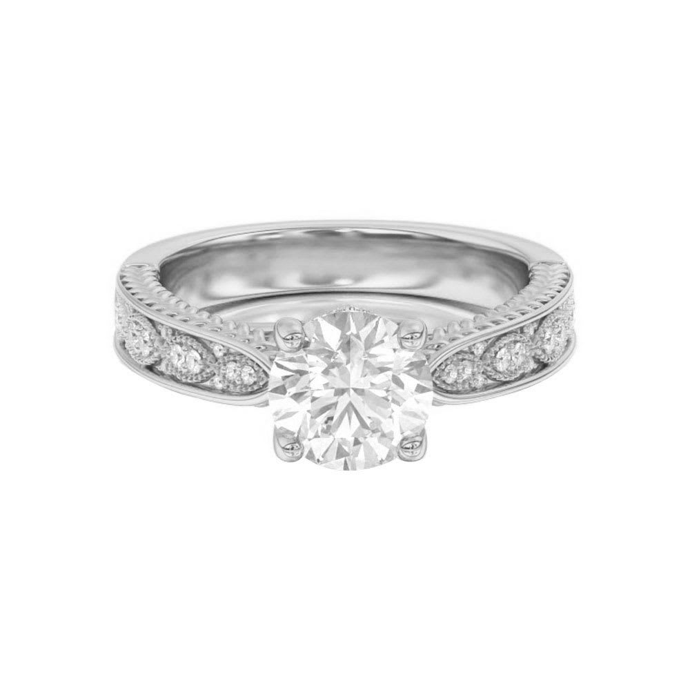 This engagement ring for women's features a lab grown round brilliant diamond set in a unique cross pattern. The diamond is surrounded by an inverted V pave setting of smaller stones that further enhance it's grace and sparkle. The shanks of the ring is delicately paved and features milgrain detailing, adding to its intricate beauty. The front view of the ring is accentuated by a filigree chevron pattern that adds to it's elegance and sophistication. The flowing lines and arrow shaped detailing in the design create a sense of movement and energy, making it a truly captivating piece . All Temple and Grace jewellery is beautifully crafted to the highest standards and is made at our jewellery workshop directly by us (skilled jewellery craftsmen). This is why you can save over 40% when compared to high-street retail prices. We also offer a lifetime warranty and unmatched 100 day returns. You can shop online or book an appointment to visit our jewellery boutiques in Sydney, Melbourne, Brisbane and Perth.
