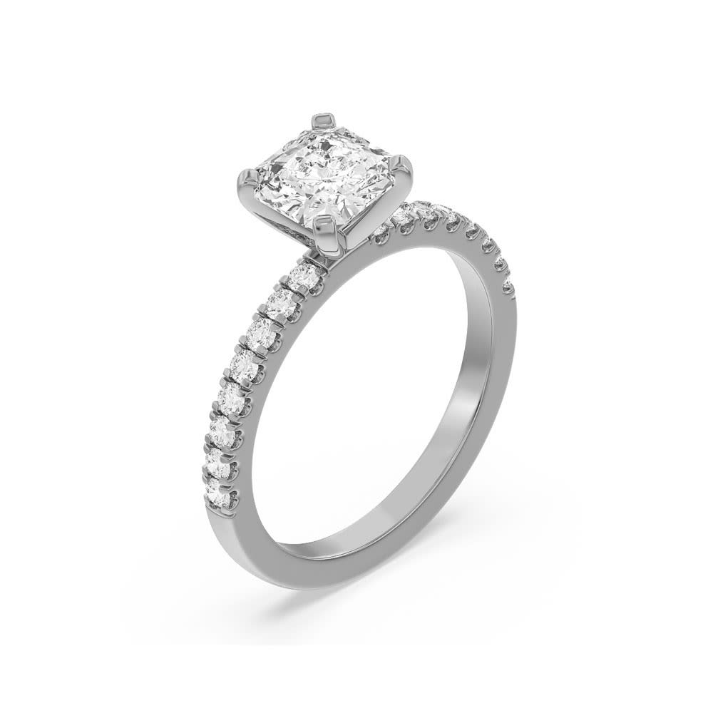 This women's engagement ring features a lab grown an asscher shape diamond that is set in a strong four prong setting. It's shanks are adorned with gleaming diamonds, adding an extra layer of grace and sparkle to it. It's edges are rounded and polished, creating a smooth and comfortable fit for the wearer. All Temple and Grace jewellery is beautifully crafted to the highest standards and is made at our jewellery workshop directly by us (skilled jewellery craftsmen). This is why you can save over 40% when compared to high-street retail prices. We also offer a lifetime warranty and unmatched 100 day returns. You can shop online or book an appointment to visit our jewellery boutiques in Sydney, Melbourne, Brisbane and Perth.