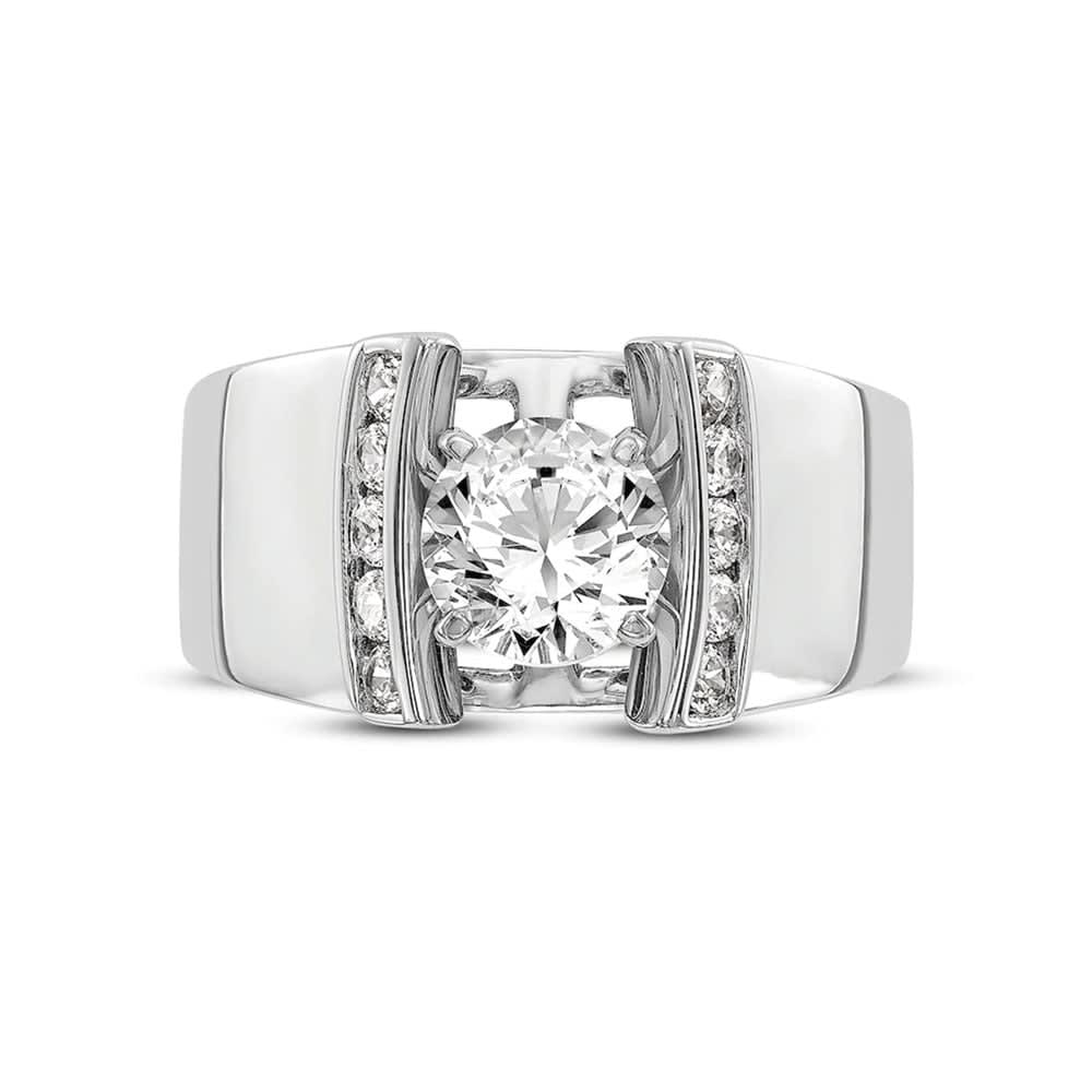 Make a bold and elegant statement with this wide diamond engagement ring. Two-channel bars of brilliant round 0.40 carat diamonds grace the edges of the band flanking the 0.30 carat centre diamond to complete the look. This striking ring exudes the perfect blend of brilliance and sophistication. It is available in 18K white, yellow, rose gold, and platinum 950. The jewellery is beautifully handmade to the highest standards. Shop directly from us and save over 40% when compared to high-street retail prices. We also offer unmatched 100 day returns. Buy online or book an appointment to visit our jewellery boutiques in Sydney and Melbourne.