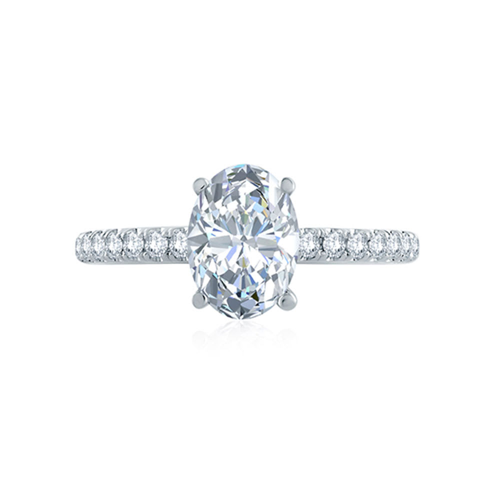 Chic and exquisite, this stunning engagement ring is certain to be stylish and full of brilliance. It features pave set diamonds on the shank embellished with a GIA certified 0.85 carat shimmering oval cut diamond in the centre. Elegantly crafted to perfection, the diamond accents add a dash of extravagance to this jewel piece. The band is available in 18K white, yellow, rose gold, and platinum 950. The jewellery is beautifully handmade to the highest standards. Shop directly from us and save over 40% when compared to high-street retail prices. We also offer unmatched 100 day returns. Buy online or book an appointment to visit our jewellery boutiques in Sydney and Melbourne.