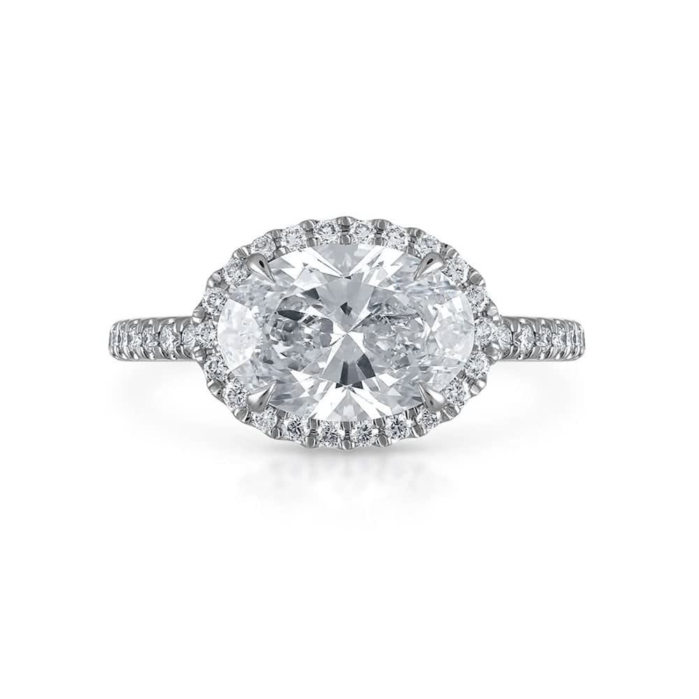 A classic oval diamond engagement ring looks timelessly beautiful and elegant. It is framed with a certified oval diamond in a contemporary four claw setting on the diamond paved shank. The shimmering halo enhances the allure of the centre diamond and gives a spectacular look. This ring is available in 18K white, yellow, rose gold, and platinum 950. The jewellery is beautifully handmade to the highest standards. Shop directly from us and save over 40% when compared to high-street retail prices. We also offer unmatched 100 day returns. Buy online or book an appointment to visit our jewellery boutiques in Sydney and Melbourne.