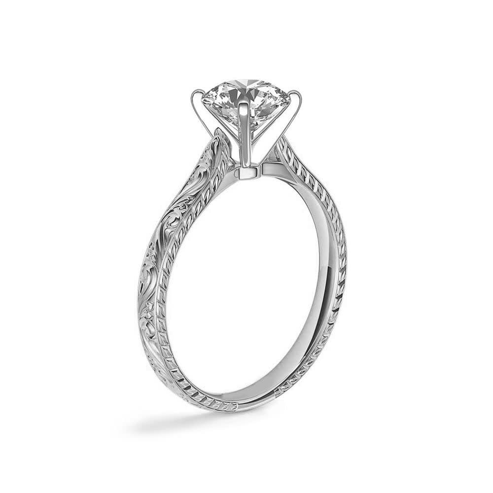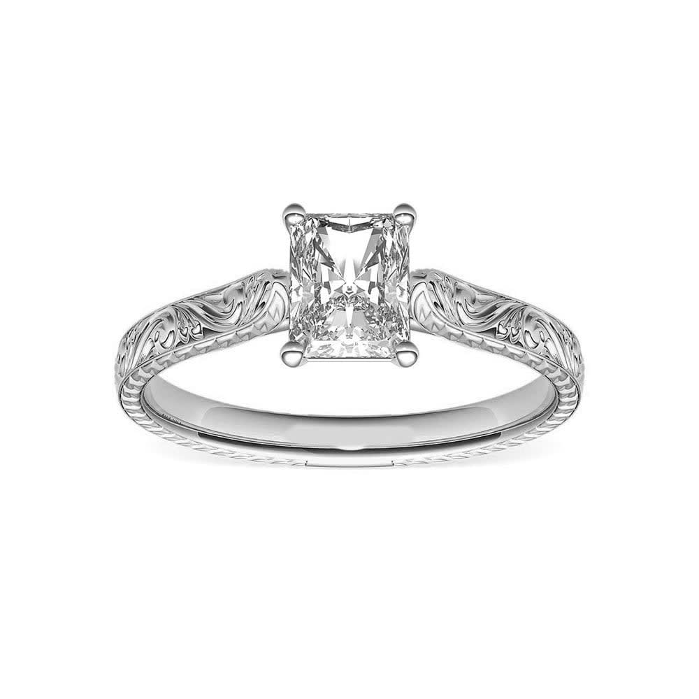 A classic yet contemporary diamond engagement ring looks immensely sparkly and eye-catching. It features an exquisitely hand-engraved gold shank embellished with GIA certified 0.50 carat radiant cut diamond held in four prongs. This beautiful diamond band radiates timeless elegance in style. The ring is available in 18K white, yellow, rose gold, and platinum 950. The jewellery is beautifully handmade to the highest standards. Shop directly from us and save over 40% when compared to high-street retail prices. We also offer unmatched 100 day returns. Buy online or book an appointment to visit our jewellery boutiques in Sydney and Melbourne.