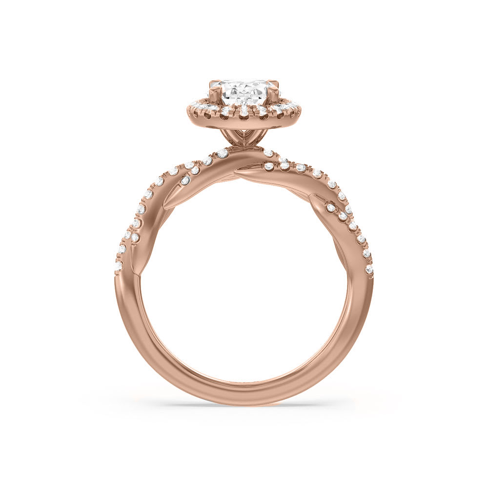 The focal point of this women's engagement ring is a lab grown round shaped diamond, which is surrounded by a halo of glittering diamonds. It has delicate strands of pave diamond twisting together to create a stunning band. The twisted pave band creates a look that is both timeless and modern, making it the perfect choice for anyone who loves classic design with a contemporary twist. All Temple and Grace jewellery is beautifully crafted to the highest standards and is made at our jewellery workshop directly by us (skilled jewellery craftsmen). This is why you can save over 40% when compared to high-street retail prices. We also offer a lifetime warranty and unmatched 100 day returns. You can shop online or book an appointment to visit our jewellery boutiques in Sydney, Melbourne, Brisbane and Perth.