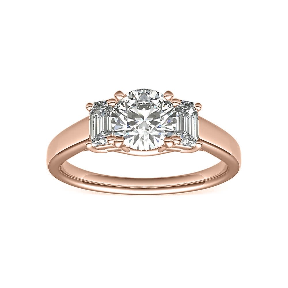 Simple with a touch of vintage, this stunning engagement ring infuses luxurious style with its rich design. It portrays a GIA certified 0.30 carat round diamond in a claw setting flanked by emerald-cut diamonds on the sides. The classic diamond engagement band comes with a comfort-fit inner profile. It is available in 18K white, yellow, rose gold, and platinum 950. The jewellery is beautifully handmade to the highest standards. Shop directly from us and save over 40% when compared to high-street retail prices. We also offer unmatched 100 day returns. Buy online or book an appointment to visit our jewellery boutiques in Sydney and Melbourne.