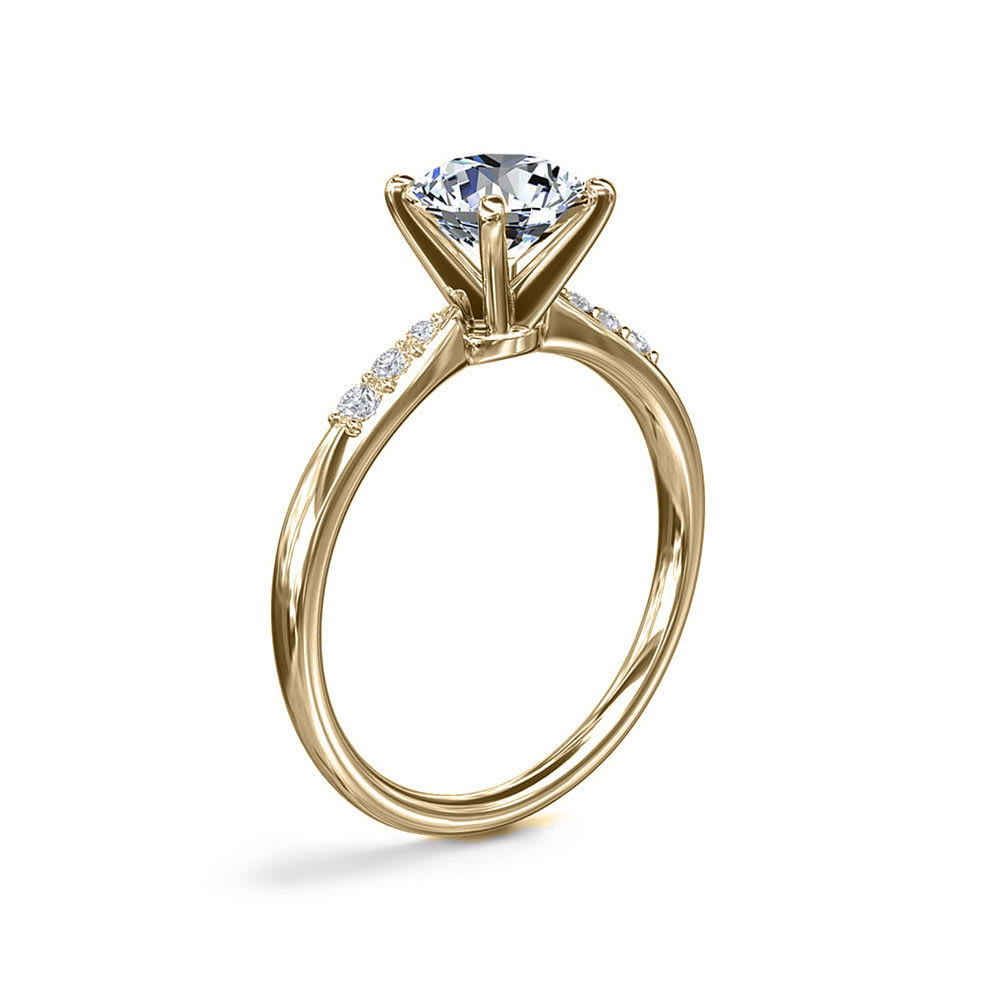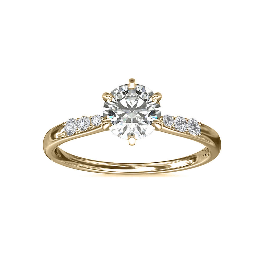 A striking diamond engagement ring captivates with its dramatic and incredible charm. It displays a brilliant 0.40 carat round diamond secured in a six-prong setting flanked by graduated round diamonds on the shoulders. The claw set GIA certified diamonds strike perfect contrast to the lustrous 14K gold and fascinate with its subtle magnificence. It is available in 18K white, yellow, rose gold, and platinum 950. The jewellery is beautifully handmade to the highest standards. Shop directly from us and save over 40% when compared to high-street retail prices. We also offer unmatched 100 day returns. Buy online or book an appointment to visit our jewellery boutiques in Sydney and Melbourne.