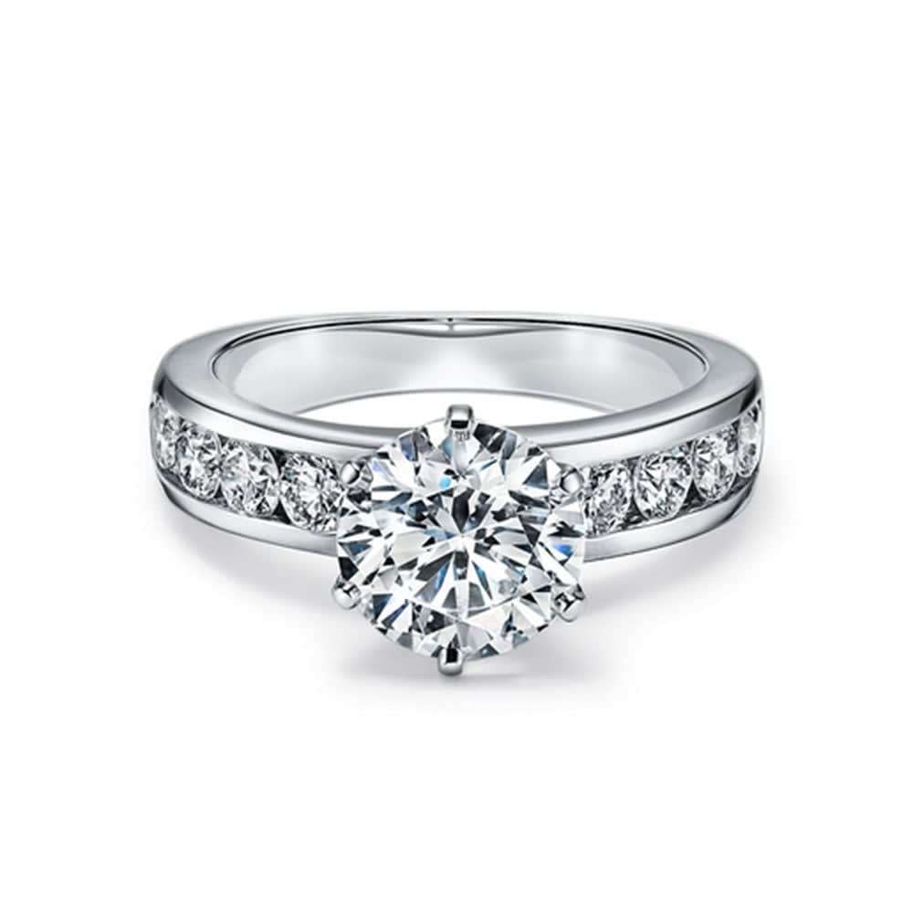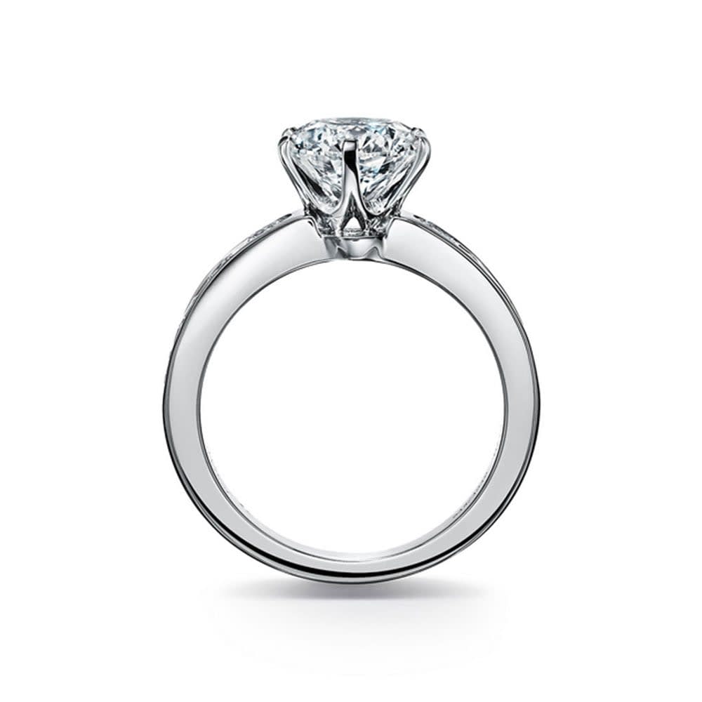 Inspired by vintage-style intricate designs, this solitaire engagement ring looks splendidly beautiful. The certified solitaire round diamond in a six-prong setting steals the spotlight with its breathtaking sparkle. The glittering diamond accents are channel set on the shank for extra brilliance. This ring is available in 18K white, yellow, rose gold, and platinum 950. The jewellery is beautifully handmade to the highest standards. Shop directly from us and save over 40% when compared to high-street retail prices. We also offer unmatched 100 day returns. Buy online or book an appointment to visit our jewellery boutiques in Sydney and Melbourne.
