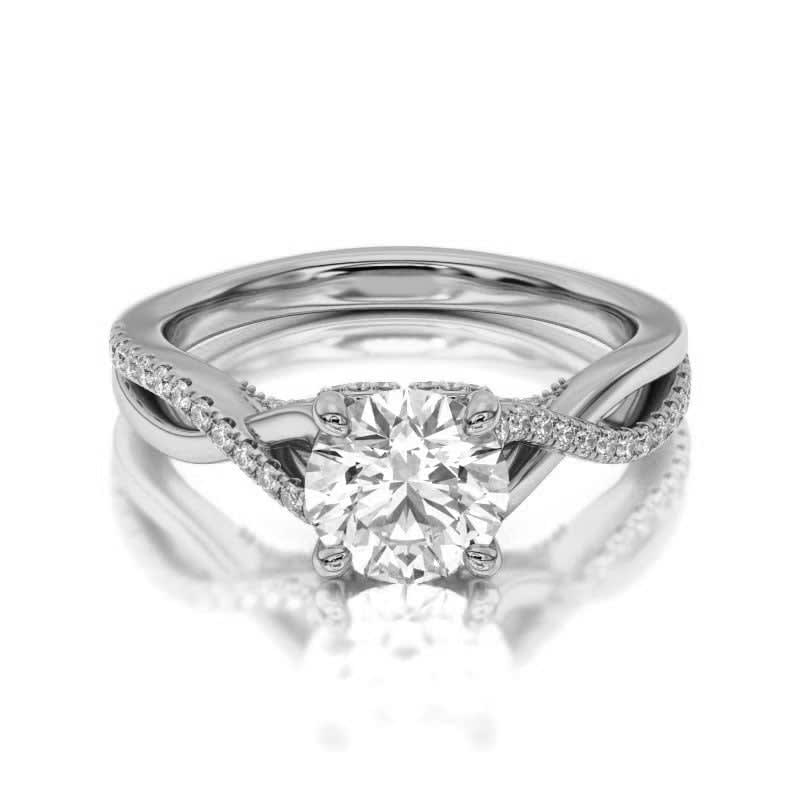 This women's engagement ring features a round brilliant lab grown diamond as it's centrepiece. The shanks of the ring has beautiful cross combination of polished and diamond accented sections. The polished sections add a sleek and modern touch to the ring, while the diamond accented sections add to the overall brilliance and elegance of the ring. All Temple and Grace jewellery is beautifully crafted to the highest standards and is made at our jewellery workshop directly by us (skilled jewellery craftsmen). This is why you can save over 40% when compared to high-street retail prices. We also offer a lifetime warranty and unmatched 100 day returns. You can shop online or book an appointment to visit our jewellery boutiques in Sydney, Melbourne, Brisbane and Perth.