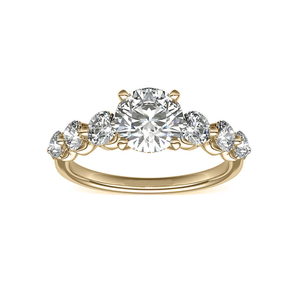 Unique and trendy, the stunning diamond band has a bold and chic design. It showcases a dazzling 0.30 carat diamond claw set along with six round diamonds that taper in size and are intricately hand-set in enduring 18K white gold. The GIA-certified shimmering diamonds accentuates the beauty of this adorable engagement ring. It is available in 18K white, yellow, rose gold, and platinum 950. The jewellery is beautifully handmade to the highest standards. Shop directly from us and save over 40% when compared to high-street retail prices. We also offer unmatched 100 day returns. Buy online or book an appointment to visit our jewellery boutiques in Sydney and Melbourne.