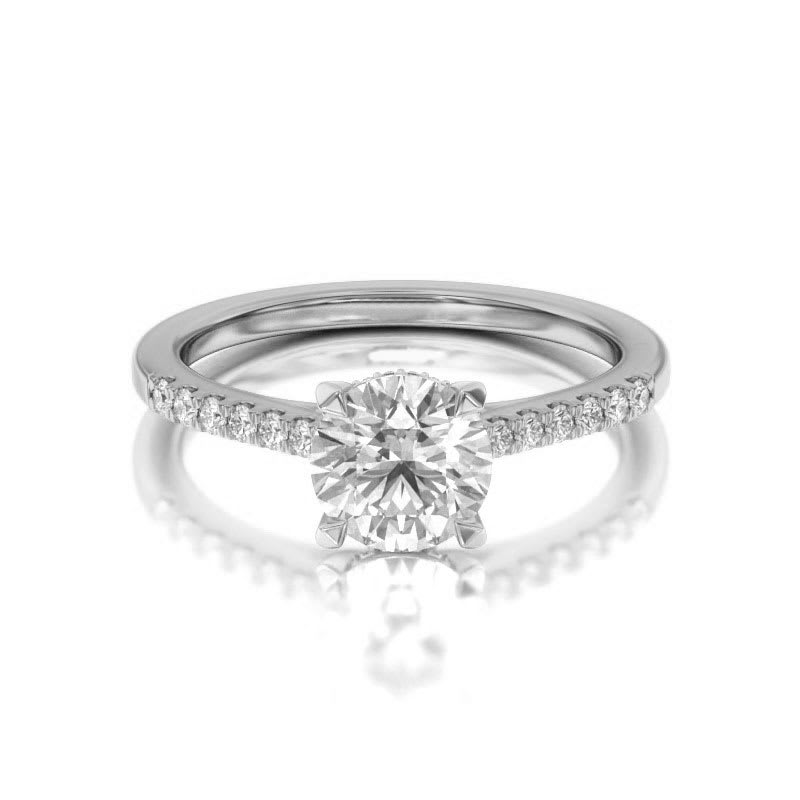 This women's engagement ring features a claw set round lab grown diamond at the centre. The pave set diamonds add a brilliant sparkle to the ring. All Temple and Grace jewellery is beautifully crafted to the highest standards and is made at our jewellery workshop directly by us (skilled jewellery craftsmen). This is why you can save over 40% when compared to high-street retail prices. We also offer a lifetime warranty and unmatched 100 day returns. You can shop online or book an appointment to visit our jewellery boutiques in Sydney, Melbourne, Brisbane and Perth.