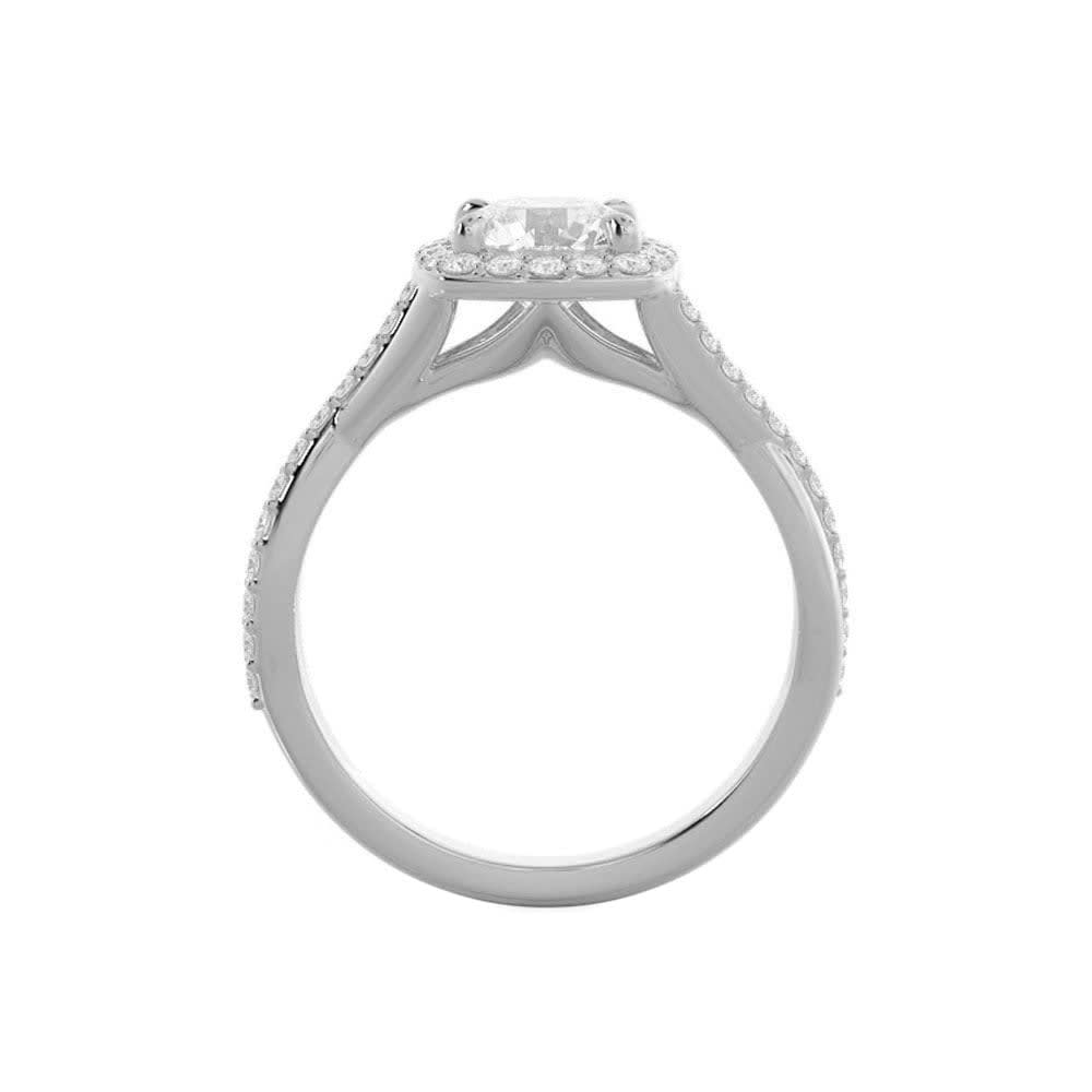 The centre lab grown round brilliant diamond in this women's split shank halo lab diamond engagement ring is set in a four prong setting that holds it firmly in place. A halo of small, brilliant diamonds adds shine and grace and surrounds the core diamond. A polished and diamond accented section of the band connects with the split shank to form the distinctive cross, creating a beautiful and intricate design. All Temple and Grace jewellery is beautifully crafted to the highest standards and is made at our jewellery workshop directly by us (skilled jewellery craftsmen). This is why you can save over 40% when compared to high-street retail prices. We also offer a lifetime warranty and unmatched 100 day returns. You can shop online or book an appointment to visit our jewellery boutiques in Sydney, Melbourne, Brisbane and Perth.