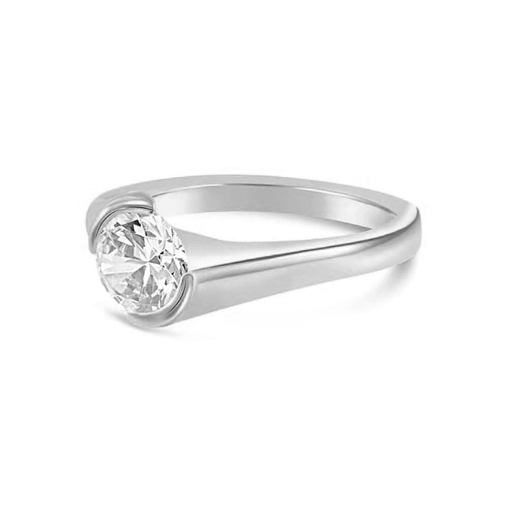 Chic and bold, this striking engagement band exudes understated elegance and sophisticated charm. The certified 0.60 carat glimmering solitaire diamond is held in a sleek and curved diagonal setting amid an ornate shank. This stunning diamond ring will make a lasting impression. It is available in 18K white, yellow, rose gold, and platinum 950. The jewellery is beautifully handmade to the highest standards. Shop directly from us and save over 40% when compared to high-street retail prices. We also offer unmatched 100 day returns. Buy online or book an appointment to visit our jewellery boutiques in Sydney and Melbourne.