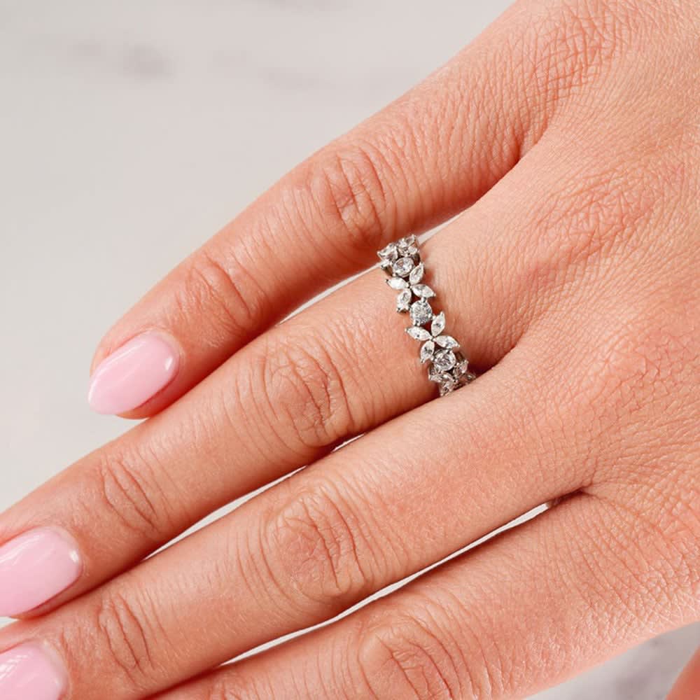 An absolute stunner, this gorgeous diamond ring fully embraces the trend. It features a dazzling row of diamonds arranged beautifully in an alluring pattern. Elegantly designed in 14K rose gold, this masterpiece is sure to win hearts. The band is available in 18K white, yellow, rose gold, platinum 600, and platinum 950. The jewellery is beautifully handmade to the highest standards. Shop directly from us and save over 40% when compared to high-street retail prices. We also offer unmatched 100 day returns. Buy online or book an appointment to visit our jewellery boutiques in Sydney, Melbourne and Brisbane.