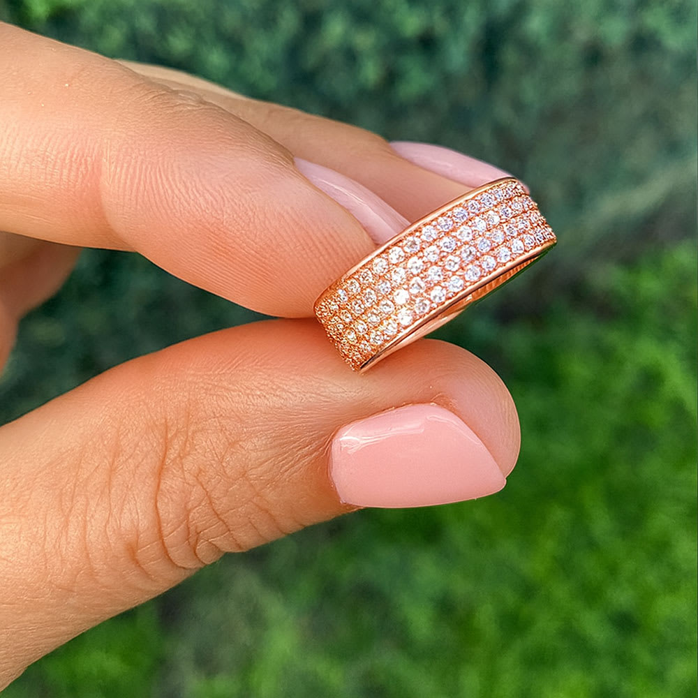 Sparkling bands of pave set diamonds are arranged in four beautiful rows showcasing an exquisite look. Exuding unmatched elegance, this 1.10 carat diamond ring is beautifully designed in 18K white gold. This ring is available in 18K white, yellow, rose gold, platinum 600, and platinum 950. The jewellery is beautifully handmade to the highest standards. Shop directly from us and save over 40% when compared to high-street retail prices. We also offer unmatched 100 day returns. Buy online or book an appointment to visit our jewellery boutiques in Sydney and Melbourne.