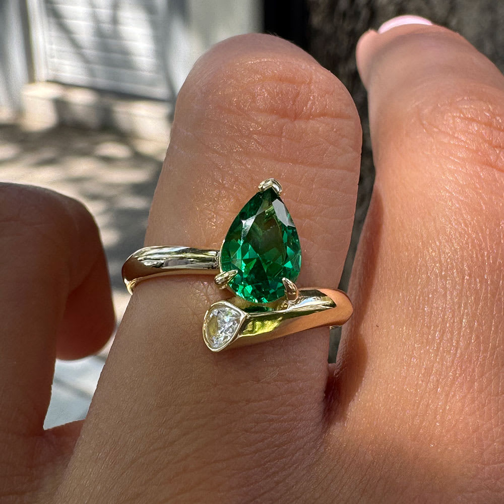 This stunning emerald engagement ring from Temple & Grace features a vivid green emerald gemstone showcased in a distinctive and artfully crafted setting that stands apart from traditional designs. The lush green hue of the emerald becomes the focal point of the piece, capturing light beautifully and giving the ring an elegant yet eye-catching presence on the hand. All Temple and Grace jewellery is beautifully crafted to the highest standards and is made at our jewellery workshop directly by us (skilled jewellery craftsmen). This is why you can save over 40% when compared to high-street retail prices. We also offer a lifetime warranty and unmatched 100 day returns. You can shop online or book an appointment to visit our jewellery boutiques in Sydney, Melbourne, Brisbane, Perth and Adelaide.