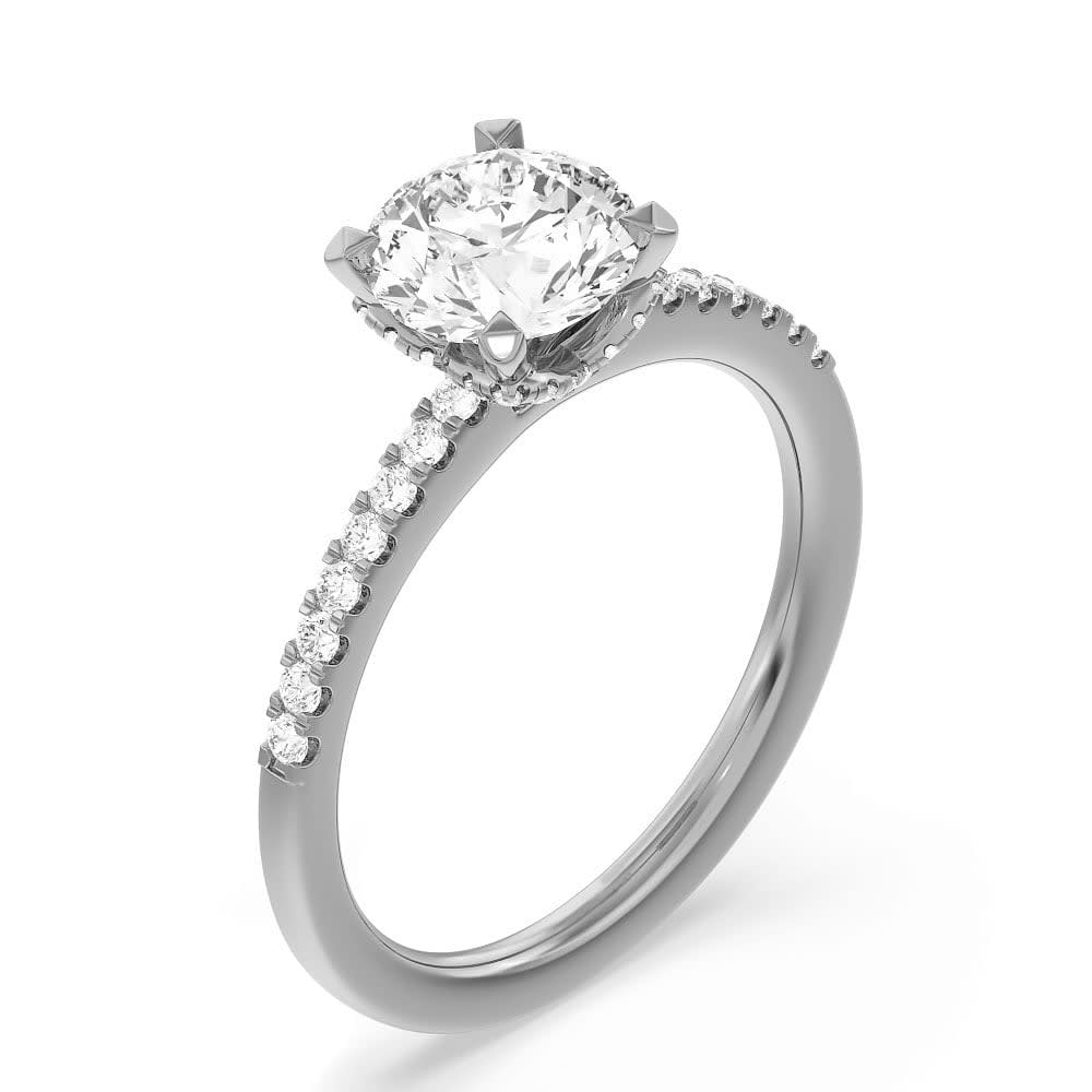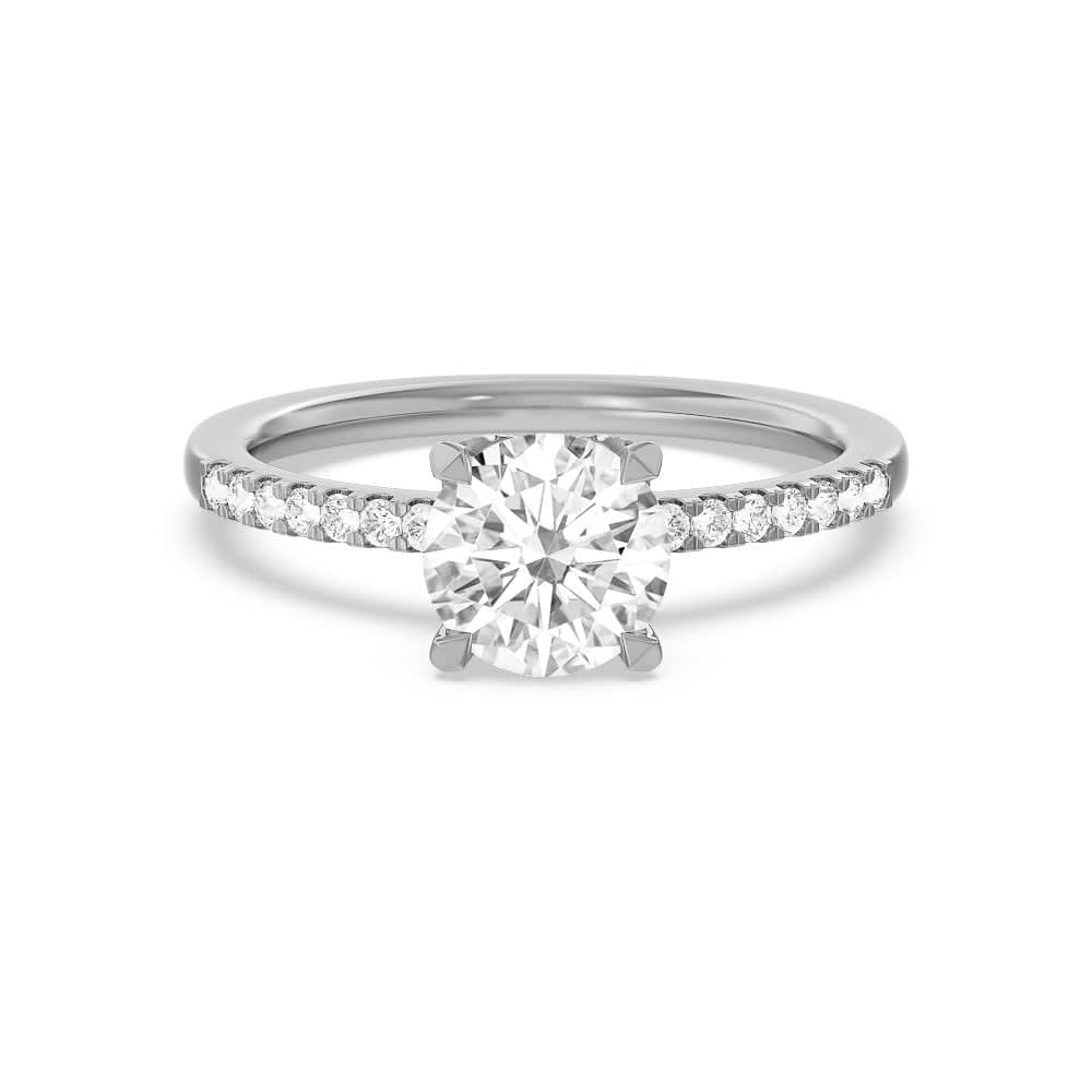 This women's engagement ring is designed to showcase a lab grown round brilliant cut diamond at it's centre, with a hidden halo design and diamond pave band to accentuate it's beauty. The hidden halo design is a unique twist on the traditional halo setting, where the small diamonds that encircle the centre stone are set underneath the main diamond, creating a subtle and understated sparkle effect. All Temple and Grace jewellery is beautifully crafted to the highest standards and is made at our jewellery workshop directly by us (skilled jewellery craftsmen). This is why you can save over 40% when compared to high-street retail prices. We also offer a lifetime warranty and unmatched 100 day returns. You can shop online or book an appointment to visit our jewellery boutiques in Sydney, Melbourne, Brisbane and Perth.