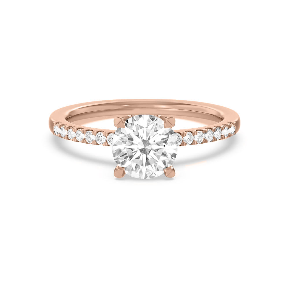 This women's engagement ring is designed to showcase a lab grown round brilliant cut diamond at it's centre, with a hidden halo design and diamond pave band to accentuate it's beauty. The hidden halo design is a unique twist on the traditional halo setting, where the small diamonds that encircle the centre stone are set underneath the main diamond, creating a subtle and understated sparkle effect. All Temple and Grace jewellery is beautifully crafted to the highest standards and is made at our jewellery workshop directly by us (skilled jewellery craftsmen). This is why you can save over 40% when compared to high-street retail prices. We also offer a lifetime warranty and unmatched 100 day returns. You can shop online or book an appointment to visit our jewellery boutiques in Sydney, Melbourne, Brisbane and Perth.
