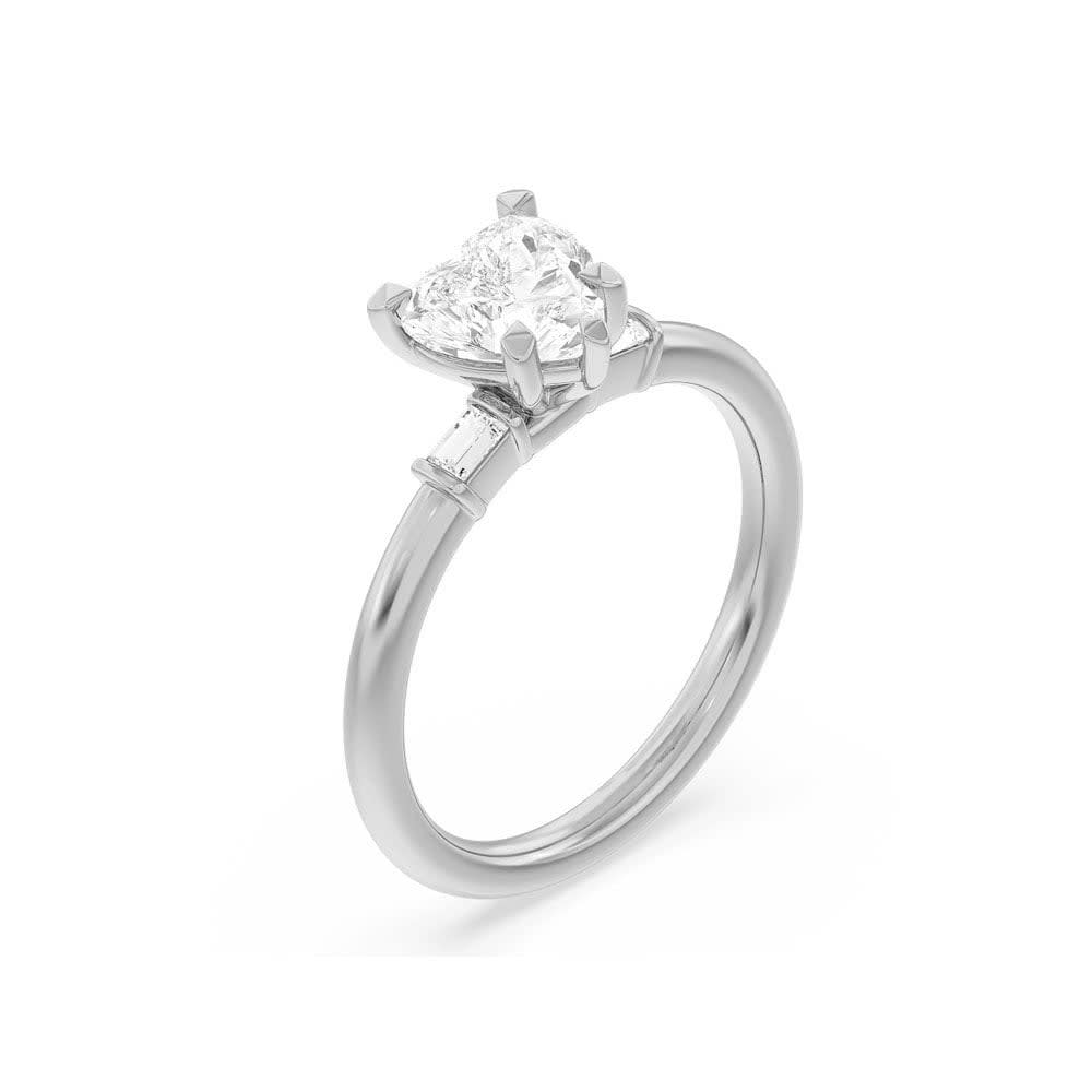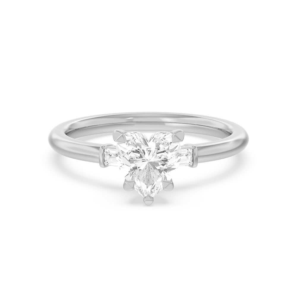 This women's engagement ring features a heart shaped lab grown diamond as it's focal point. The two baguette diamonds set on the side, add a touch of elegance and sophistication to the ring. These stones are carefully chosen to complement the central diamond and create a beautifully balanced design. It has a comfortable and secure fit, allowing it to be worn with ease and confidence. All Temple and Grace jewellery is beautifully crafted to the highest standards and is made at our jewellery workshop directly by us (skilled jewellery craftsmen). This is why you can save over 40% when compared to high-street retail prices. We also offer a lifetime warranty and unmatched 100 day returns. You can shop online or book an appointment to visit our jewellery boutiques in Sydney, Melbourne, Brisbane and Perth.