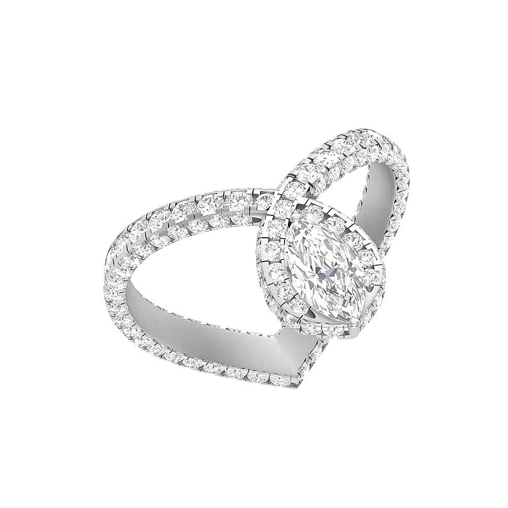 Truly a romantic design. You have your heart set with a beautiful lab grown marquise and enhanced with side and shoulder diamonds. A beautiful gesture to show to your loved one. Available in rose, yellow and white gold. Ask our professional sales advisors for any assistance.