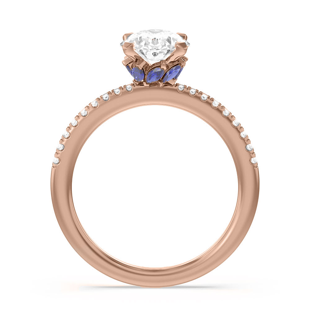 The focal point of the ring is a stunning lab grown round shaped diamond, which is set in a four prong setting to ensure its security and allow maximum light to enter, creating a breathtaking sparkle. The hidden halo of blue gems that surrounds the stone, adds a pop of color and unexpected detail. It has a channel set of accented stones, which add a touch of extra sparkle and texture to it. All Temple and Grace jewellery is beautifully crafted to the highest standards and is made at our jewellery workshop directly by us (skilled jewellery craftsmen). This is why you can save over 40% when compared to high-street retail prices. We also offer a lifetime warranty and unmatched 100 day returns. You can shop online or book an appointment to visit our jewellery boutiques in Sydney, Melbourne, Brisbane and Perth.