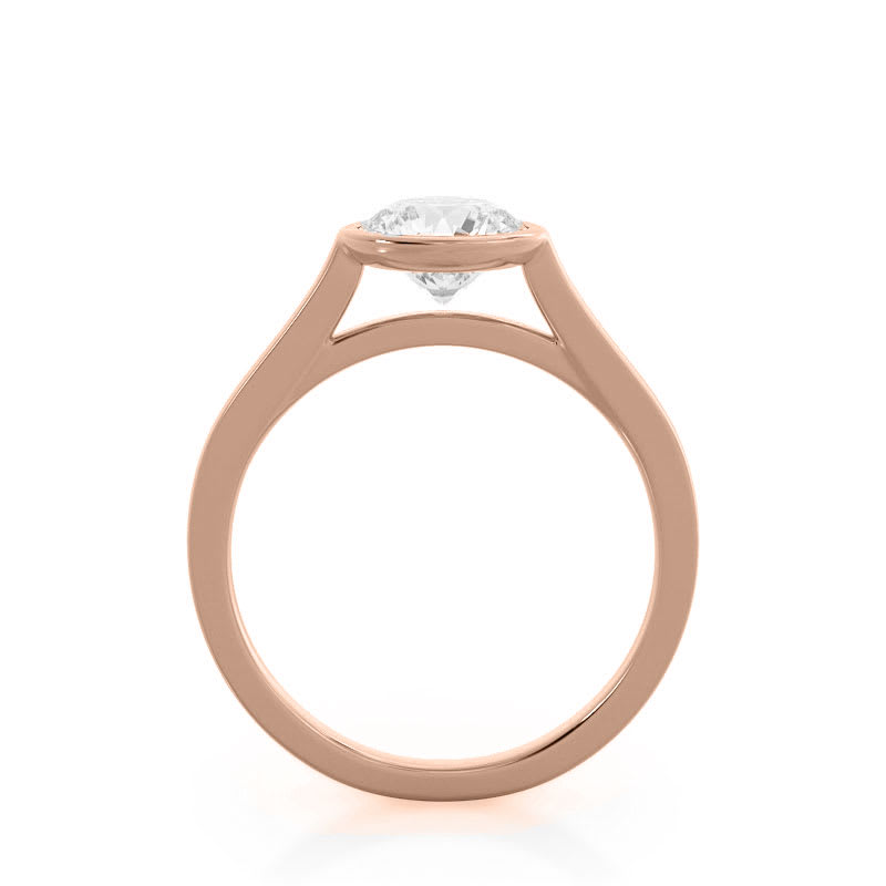 The focal point of this women's diamond engagement ring is a beautiful lab grown round diamond set in a bezel and held firmly in place by the metal. The diamond is held securely in place by the ring's polished shoulders. All Temple and Grace jewellery is beautifully crafted to the highest standards and is made at our jewellery workshop directly by us (skilled jewellery craftsmen). This is why you can save over 40% when compared to high-street retail prices. We also offer a lifetime warranty and unmatched 100 day returns. You can shop online or book an appointment to visit our jewellery boutiques in Sydney, Melbourne, Brisbane and Perth.