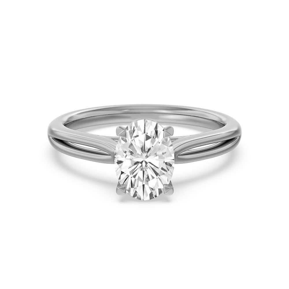 This women's engagement ring features a lab grown oval shaped diamond set in a four prong setting with unique cathedral shoulders. The shoulders of the ring sweep up and curve towards the center stone, creating a graceful and flowing effect. It's edges are polished and shiny, highlighting the beauty of the diamond and adding a touch of glamour to the overall design. All Temple and Grace jewellery is beautifully crafted to the highest standards and is made at our jewellery workshop directly by us (skilled jewellery craftsmen). This is why you can save over 40% when compared to high-street retail prices. We also offer a lifetime warranty and unmatched 100 day returns. You can shop online or book an appointment to visit our jewellery boutiques in Sydney, Melbourne, Brisbane and Perth.