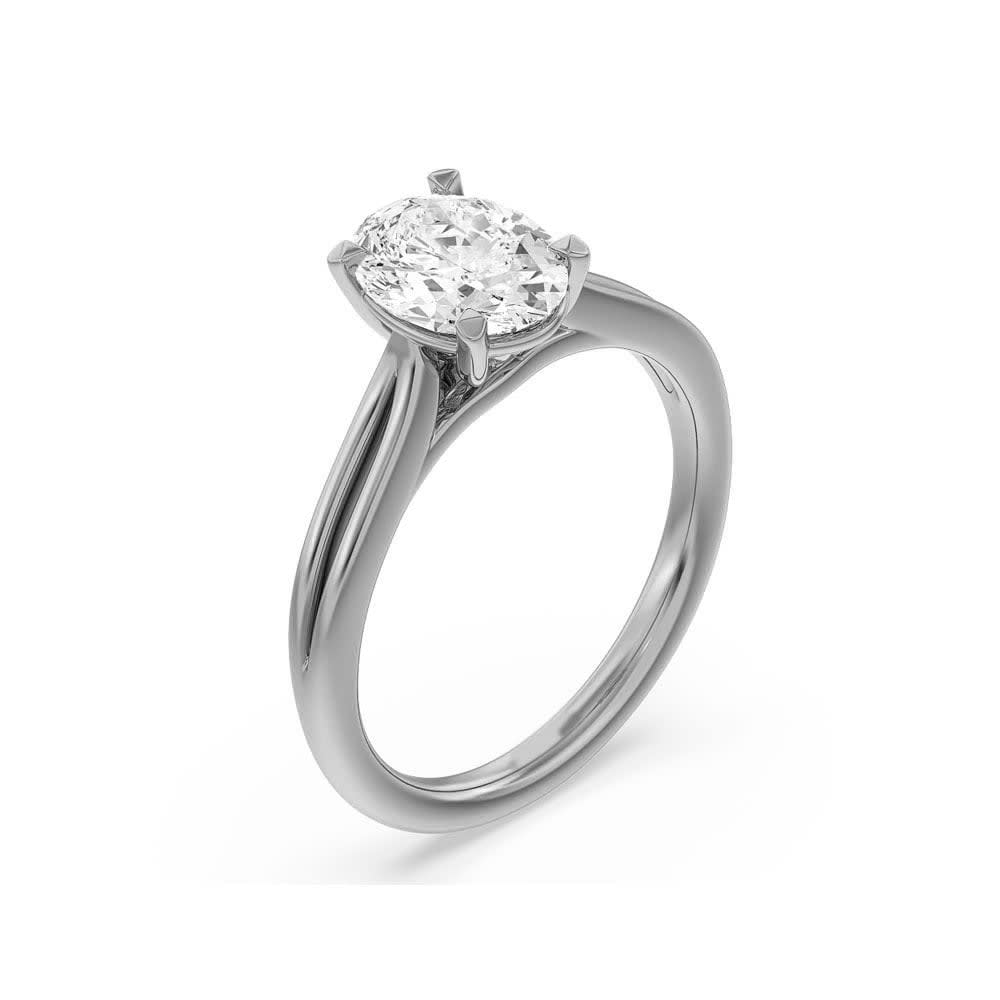 This women's engagement ring features a lab grown oval shaped diamond set in a four prong setting with unique cathedral shoulders. The shoulders of the ring sweep up and curve towards the center stone, creating a graceful and flowing effect. It's edges are polished and shiny, highlighting the beauty of the diamond and adding a touch of glamour to the overall design. All Temple and Grace jewellery is beautifully crafted to the highest standards and is made at our jewellery workshop directly by us (skilled jewellery craftsmen). This is why you can save over 40% when compared to high-street retail prices. We also offer a lifetime warranty and unmatched 100 day returns. You can shop online or book an appointment to visit our jewellery boutiques in Sydney, Melbourne, Brisbane and Perth.