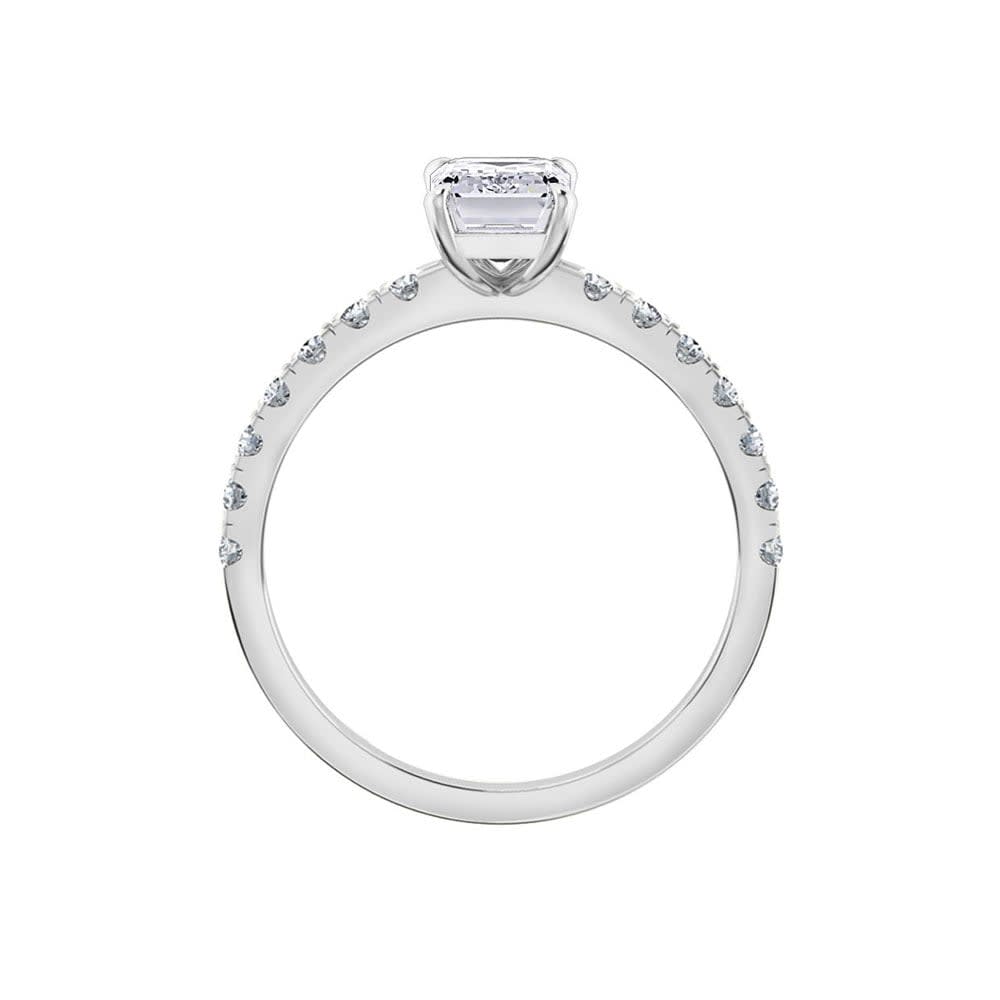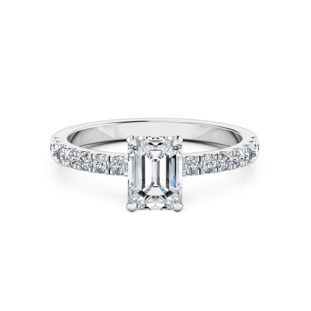 This women's engagement ring features a magnificent emerald cut diamond at the centre. Nested in a four claw setting, the emerald cut diamond takes center stage, allowing its captivating radiance to shine from every angle. The diamonds along the shank, meticulously set to enhance the ring's beauty, add a touch of extra sparkle. All Temple and Grace jewellery is beautifully crafted to the highest standards and is made at our jewellery workshop directly by us (skilled jewellery craftsmen). This is why you can save over 40% when compared to high-street retail prices. We also offer a lifetime warranty and unmatched 100 day returns. You can shop online or book an appointment to visit our jewellery boutiques in Sydney, Melbourne, Brisbane, Perth and Adelaide.