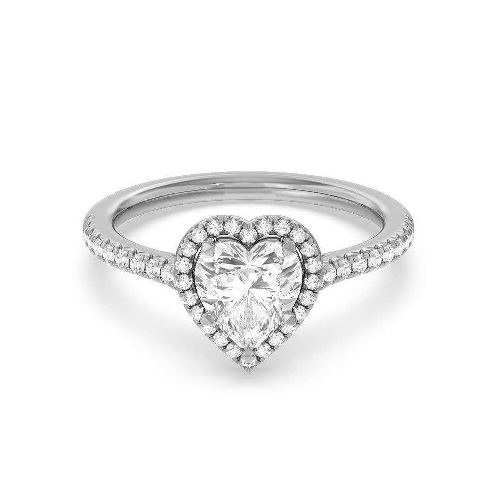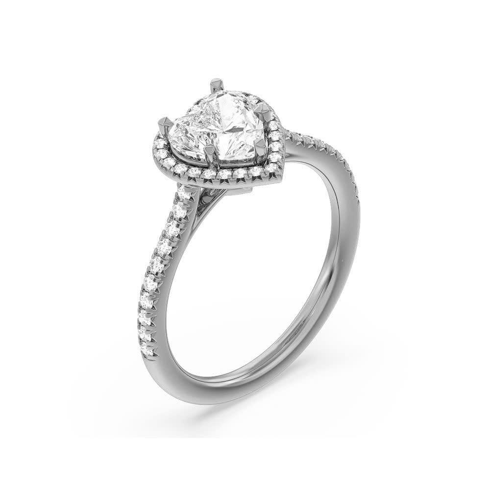 This women's engagement ring features a gorgeous lab grown heart shaped diamond as it's centrepiece. The halo of stones is set in a way that perfectly frames the central diamond, adding a touch of elegance and sophistication to the design. The shanks of the ring are also adorned with diamonds, which are set in a beautiful channel setting. All Temple and Grace jewellery is beautifully crafted to the highest standards and is made at our jewellery workshop directly by us (skilled jewellery craftsmen). This is why you can save over 40% when compared to high-street retail prices. We also offer a lifetime warranty and unmatched 100 day returns. You can shop online or book an appointment to visit our jewellery boutiques in Sydney, Melbourne, Brisbane and Perth.