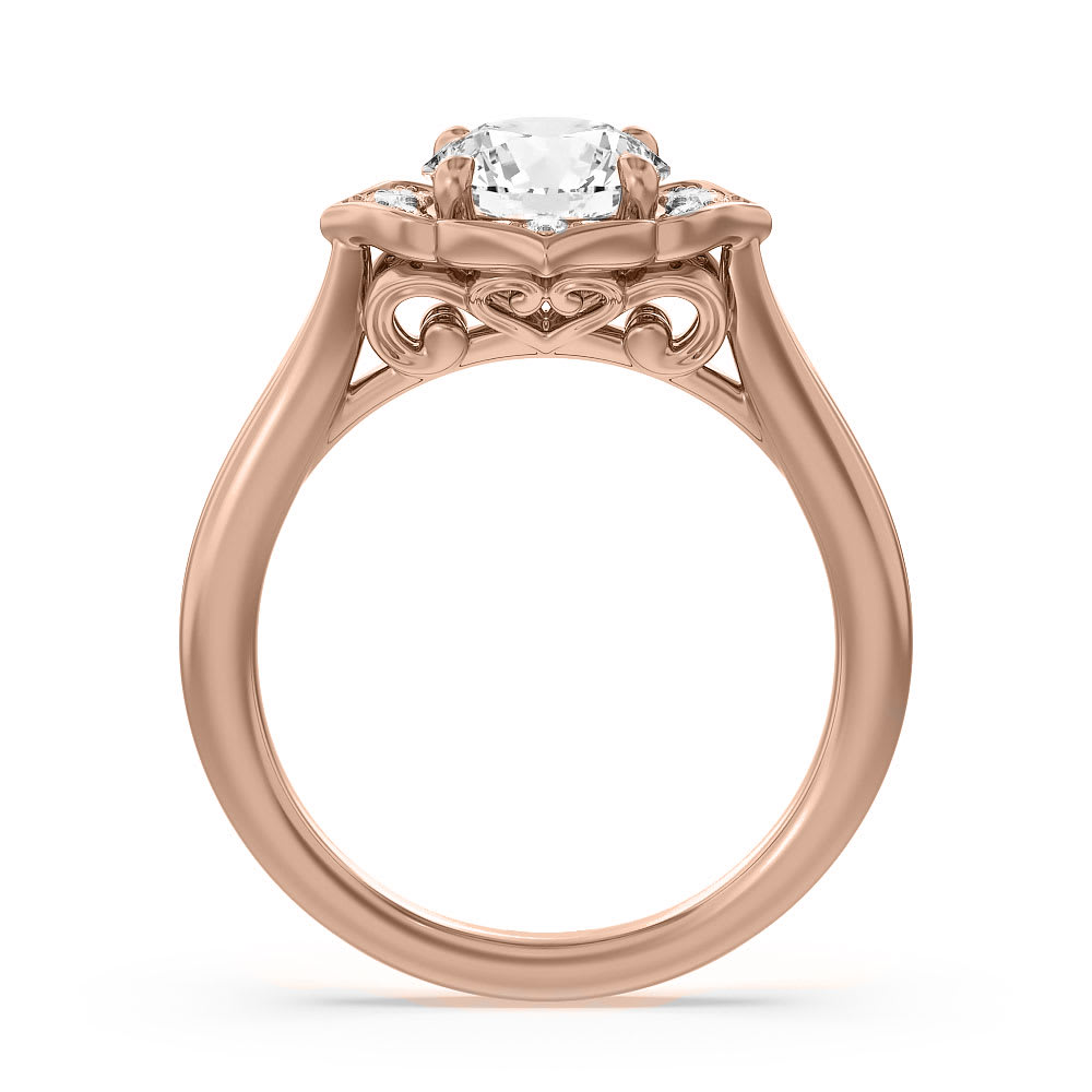 This women's engagement ring features a stunning lab grown round brilliant diamond as it's centrepiece. The focal diamond is surrounded by a halo of diamonds in a petal shape, which adds to the ring's elegance and sparkle. The engraved split detail creates a separation between the top and bottom of the band, making the ring more visually interesting. All Temple and Grace jewellery is beautifully crafted to the highest standards and is made at our jewellery workshop directly by us (skilled jewellery craftsmen). This is why you can save over 40% when compared to high-street retail prices. We also offer a lifetime warranty and unmatched 100 day returns. You can shop online or book an appointment to visit our jewellery boutiques in Sydney, Melbourne, Brisbane and Perth.