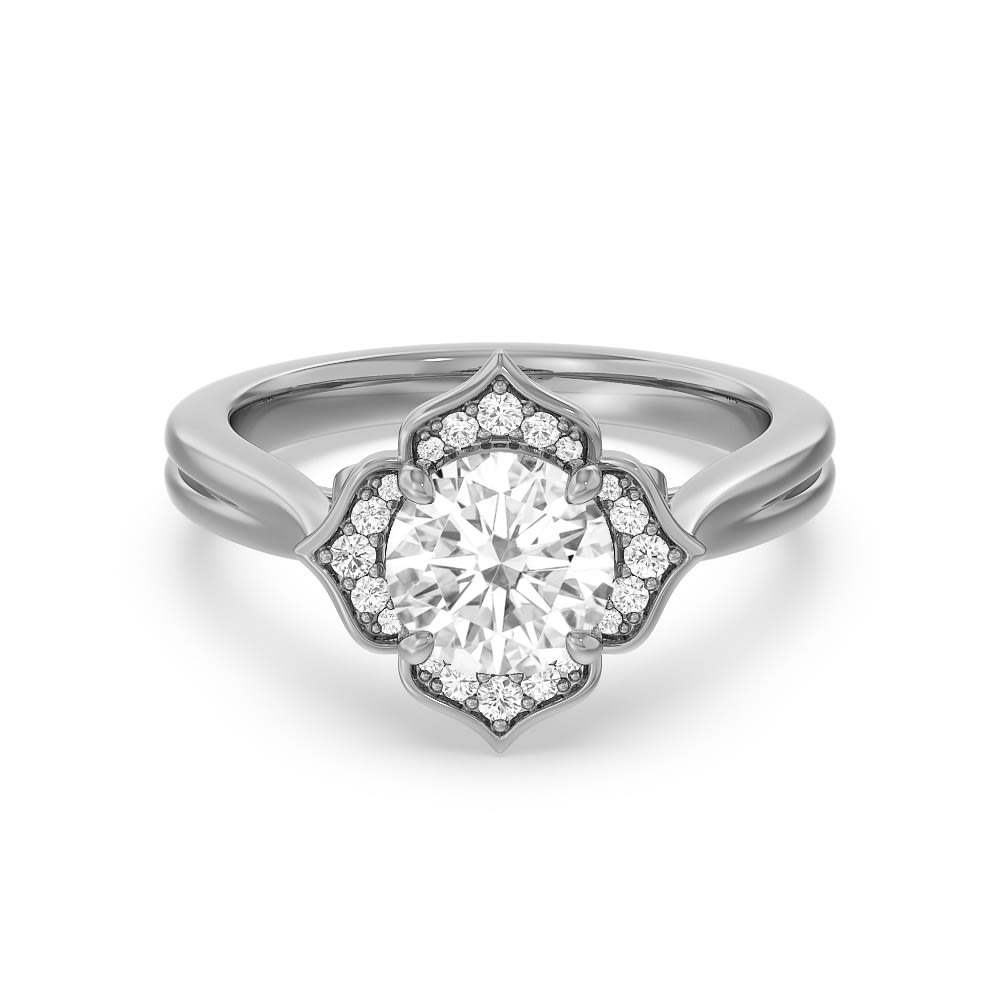This women's engagement ring features a stunning lab grown round brilliant diamond as it's centrepiece. The focal diamond is surrounded by a halo of diamonds in a petal shape, which adds to the ring's elegance and sparkle. The engraved split detail creates a separation between the top and bottom of the band, making the ring more visually interesting. All Temple and Grace jewellery is beautifully crafted to the highest standards and is made at our jewellery workshop directly by us (skilled jewellery craftsmen). This is why you can save over 40% when compared to high-street retail prices. We also offer a lifetime warranty and unmatched 100 day returns. You can shop online or book an appointment to visit our jewellery boutiques in Sydney, Melbourne, Brisbane and Perth.