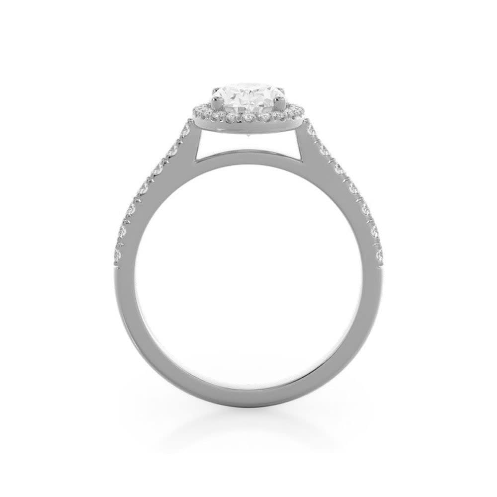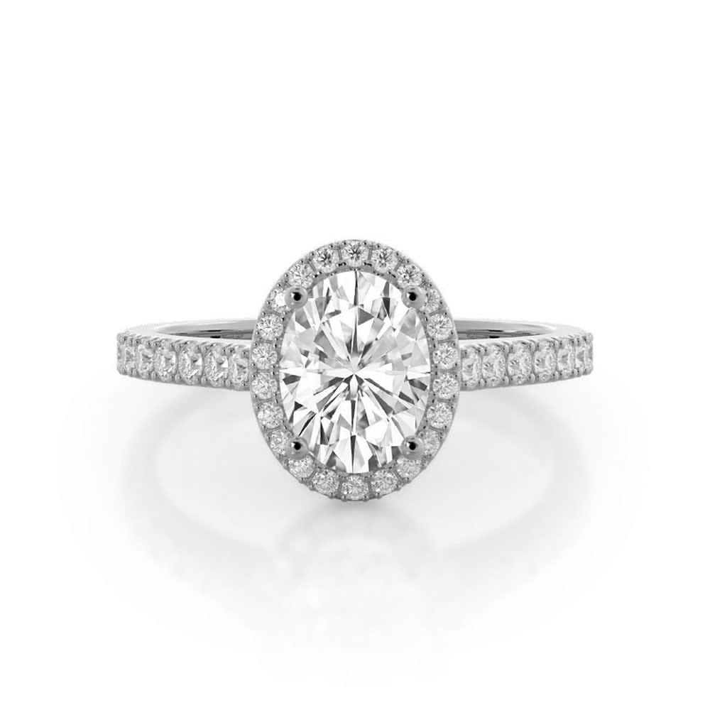 This women's engagement ring features an oval lab grown diamond accented with halo diamonds. The beauty of the shank is enhanced by halfway pave set lab diamonds. This ring is surely a head turner. All Temple and Grace jewellery is beautifully crafted to the highest standards and is made at our jewellery workshop directly by us (skilled jewellery craftsmen). This is why you can save over 40% when compared to high-street retail prices. We also offer a lifetime warranty and unmatched 100 day returns. You can shop online or book an appointment to visit our jewellery boutiques in Sydney, Melbourne, Brisbane and Perth.