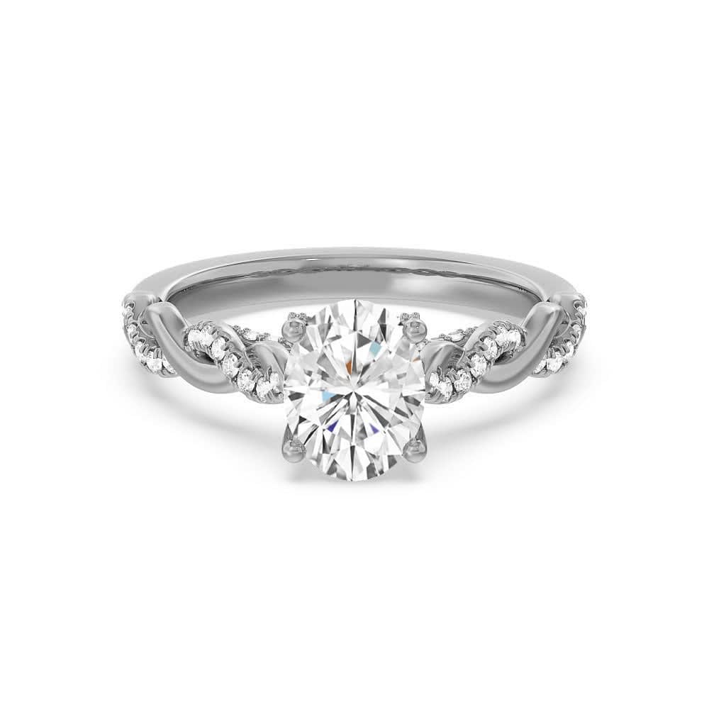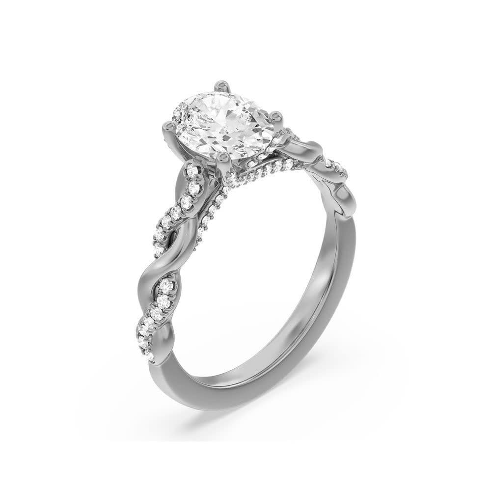 This women's engagement ring features an oval brilliant lab diamond set in a classic claw setting that is elegantly framed by four claws, which serves as the centrepiece of the design. The shank has braided detailing that twists together with pave diamonds to create a dazzling effect. The diamond embellished band splits to twist over and under itself, creating a unique and elegant look that adds depth and dimension to the design.. All Temple and Grace jewellery is beautifully crafted to the highest standards and is made at our jewellery workshop directly by us (skilled jewellery craftsmen). This is why you can save over 40% when compared to high-street retail prices. We also offer a lifetime warranty and unmatched 100 day returns. You can shop online or book an appointment to visit our jewellery boutiques in Sydney, Melbourne, Brisbane and Perth.