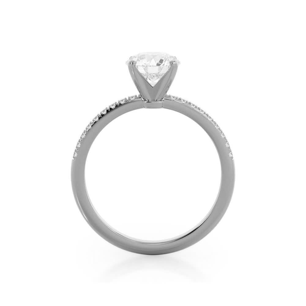 This women's engagement ring features a lab grown round brilliant cut diamond at the centre accented with pave set diamonds set halfway on the band. All Temple and Grace jewellery is beautifully crafted to the highest standards and is made at our jewellery workshop directly by us (skilled jewellery craftsmen). This is why you can save over 40% when compared to high-street retail prices. We also offer a lifetime warranty and unmatched 100 day returns. You can shop online or book an appointment to visit our jewellery boutiques in Sydney, Melbourne, Brisbane and Perth.