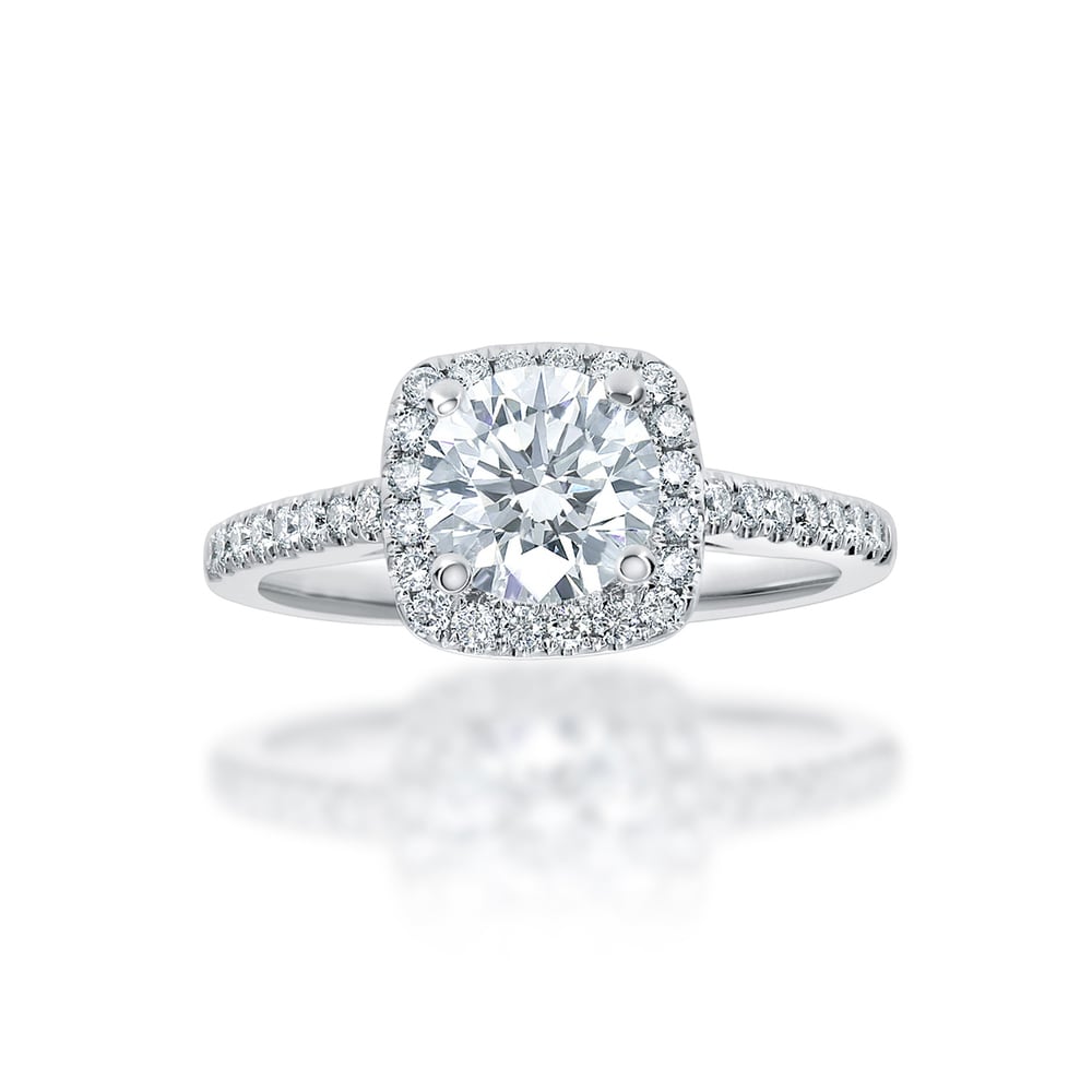 This Round Brilliant Cut engagement ring with a cushion halo is featured in 18k White Gold. This gorgeous diamond engagement ring is set with a 1.00ct Certified round brilliant cut diamond in the center with other 0.025ct diamonds forming a halo and diamonds halfway across the band. This ring style can be made to accommodate a center stone of any size/quality to meet your desired budget. All rings are available in Platinum, 18K White, Yellow, and Rose Gold. Please contact T&G to learn more about this ring or to request pricing on something specific you may have in mind. All Temple and Grace jewellery is beautifully crafted to the highest standards and is made at our jewellery workshop directly by us (skilled jewellery craftsmen). This is why you can save over 40% when compared to high-street retail prices. We also offer a lifetime warranty and unmatched 100 day returns. You can shop online or book an appointment to visit our jewellery boutiques in Sydney, Melbourne, Brisbane, Perth and Adelaide.