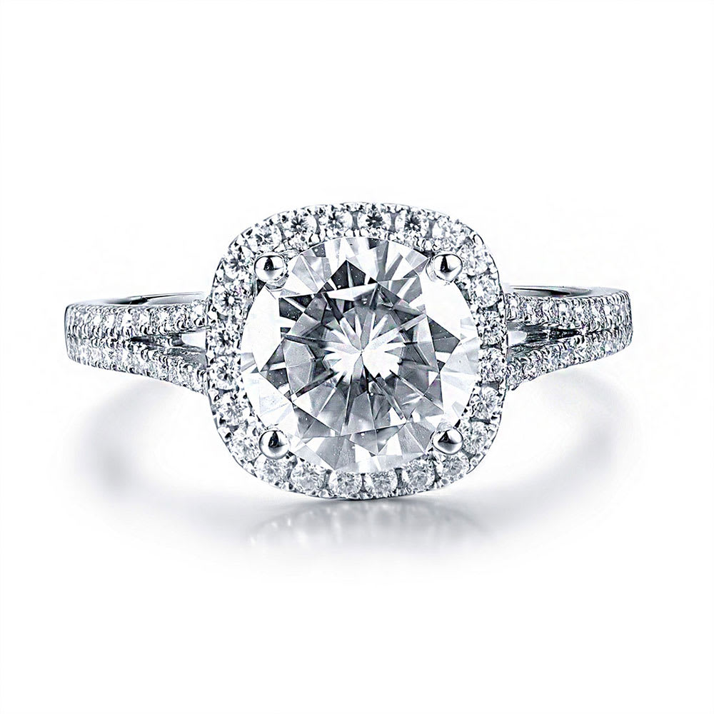 This Round Brilliant Cut engagement ring fully handcrafted with a cushion diamond halo on a split shank. This gorgeous diamond engagement ring is set with 1.50ct Certified round brilliant cut diamond in the centre with other diamonds forming a halo and diamonds halfway across the split band. This ring style can be made to accommodate a center stone of any size/quality to meet your desired budget. All rings are available in Platinum, 18K White, Yellow, and Rose Gold. Please contact Temple and Grace team to learn more about this ring or to request pricing on something specific you may have in mind.