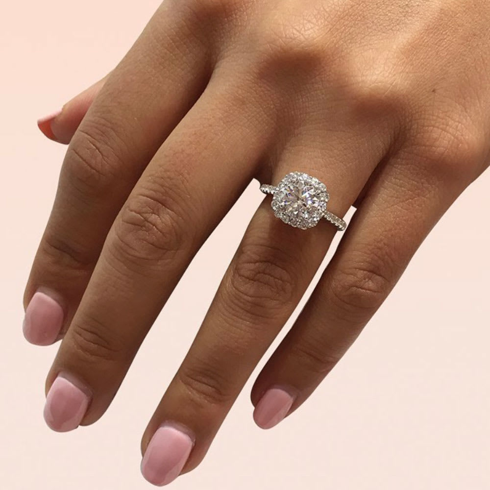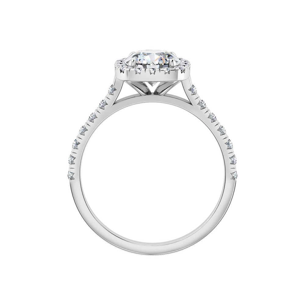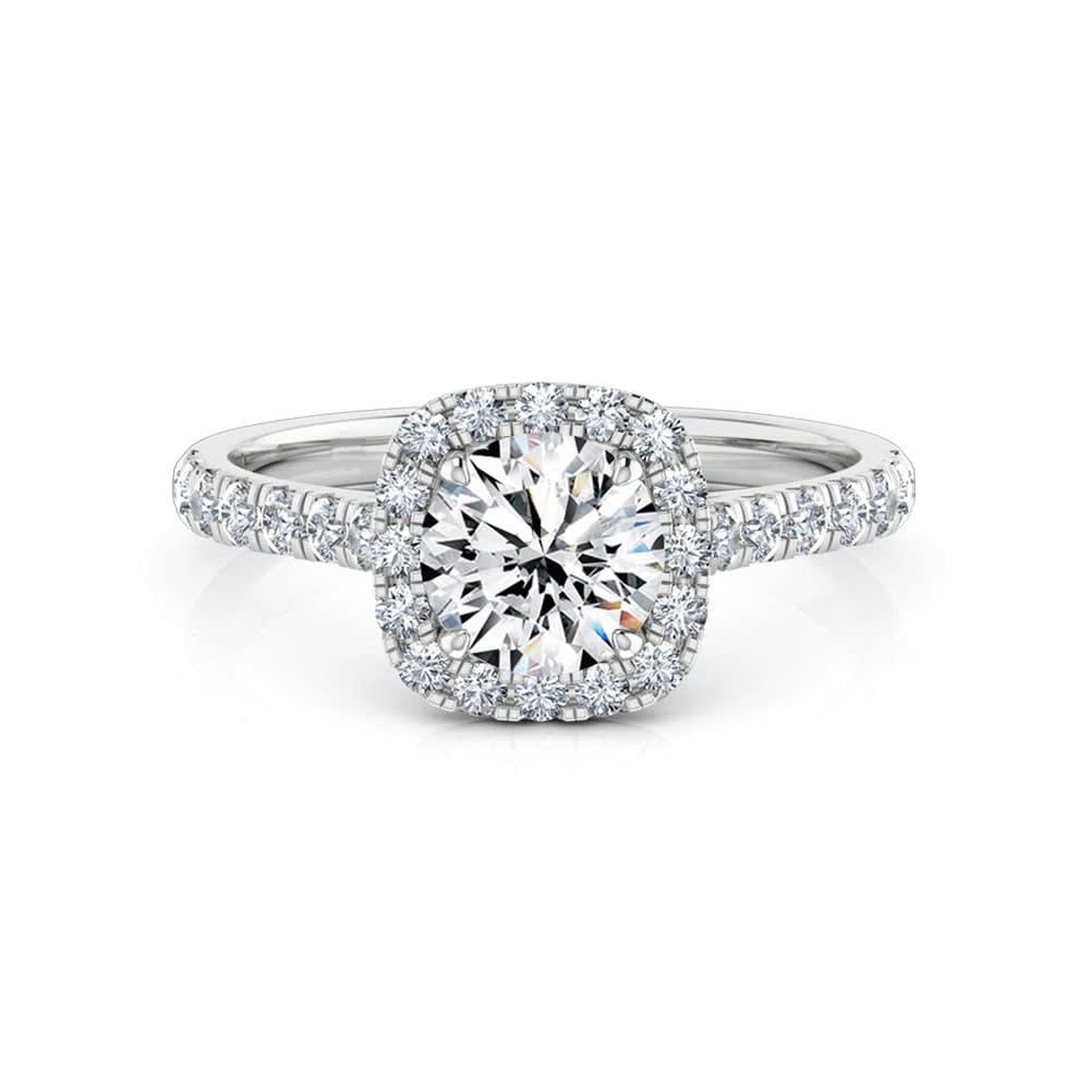 This beautiful round brilliant cut diamond engagement ring features a cushion halo. It is set with a 0.80 carat certified round brilliant cut diamond in the centre and 0.50 carat diamonds to form a halo. The diamonds are brilliantly set halfway across the band. Being Australian diamond wholesalers ourselves, we can guarantee that we use only the best handpicked diamonds, all of which are backed by a certificate of authenticity and valuation certificate. All Temple and Grace engagement rings are beautifully crafted to the highest standards and are made at our jewellery workshop directly by us (skilled jewellery craftsmen). This is why you can save over 40% when compared to high-street retail prices. We also offer a lifetime warranty and unmatched 100 day returns. You can shop online or book an appointment to visit our jewellery boutiques in Sydney and Melbourne.