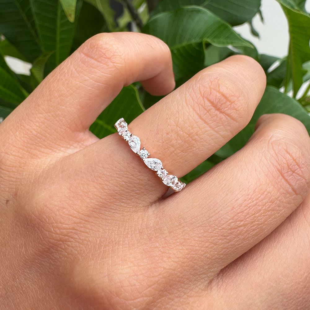 Delicate and radiant, this eternity band features alternating pear and round diamonds for a unique yet timeless design. Set in sleek gold band, it is a perfect symbol of everlasting love and refined elegance. All Temple and Grace jewellery is beautifully crafted to the highest standards and is made at our jewellery workshop directly by us (jewellery craftsmen). This is why you can save over 40% when compared to high-street retail prices. We also offer a lifetime warranty and unmatched 100 day returns. You can shop online or visit our jewellery stores in Sydney, Melbourne, Brisbane, Perth and Adelaide or book an appointment to visit our jewellery boutiques.