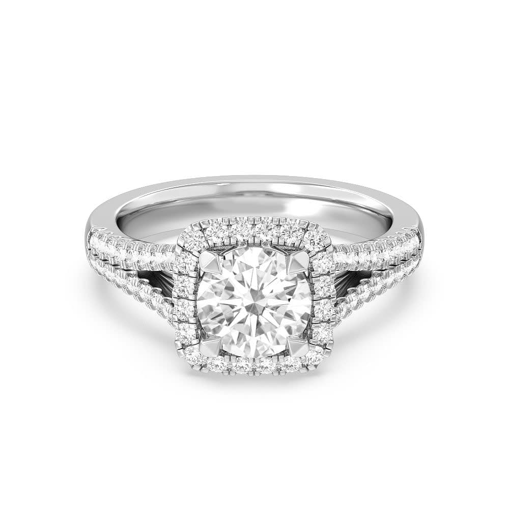 This women's engagement ring features a lab grown round brilliant diamond as it's centrepiece which is enhanced by a halo of glittering stones. The shanks of the ring are accented with diamonds that uplift the central diamond, creating a stunning and elegant look. It has hidden diamond along with milgrain detailing ,which has delicate and intricate design that adds a vintage touch to the ring. All Temple and Grace jewellery is beautifully crafted to the highest standards and is made at our jewellery workshop directly by us (skilled jewellery craftsmen). This is why you can save over 40% when compared to high-street retail prices. We also offer a lifetime warranty and unmatched 100 day returns. You can shop online or book an appointment to visit our jewellery boutiques in Sydney, Melbourne, Brisbane and Perth.