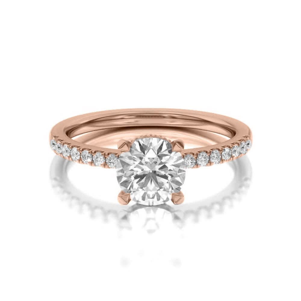 This elegant women's engagement ring features a stunning round brilliant cut lab grown diamond secured in place by a delicate claw setting, which allows the stone to be prominently displayed and catch the light from every angle. The centre stone is further accentuated by a delicate row of diamonds in a modern hidden halo design. The pave set diamonds on the band complement the halo design and add a subtle yet luxurious touch. All Temple and Grace jewellery is beautifully crafted to the highest standards and is made at our jewellery workshop directly by us (skilled jewellery craftsmen). This is why you can save over 40% when compared to high-street retail prices. We also offer a lifetime warranty and unmatched 100 day returns. You can shop online or book an appointment to visit our jewellery boutiques in Sydney, Melbourne, Brisbane and Perth.