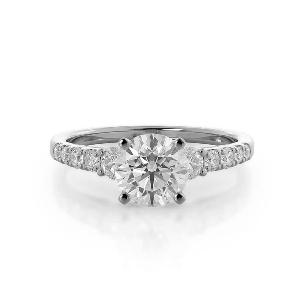 A women's engagement ring featuring a claw set round brilliant cut diamond at the focal point is a classic and elegant design. The band of the ring is adorned with small diamonds that are pave set, which means they are set close together and flush with the surface of the band. All Temple and Grace jewellery is beautifully crafted to the highest standards and is made at our jewellery workshop directly by us (skilled jewellery craftsmen). This is why you can save over 40% when compared to high-street retail prices. We also offer a lifetime warranty and unmatched 100 day returns. You can shop online or book an appointment to visit our jewellery boutiques in Sydney, Melbourne, Brisbane and Perth.