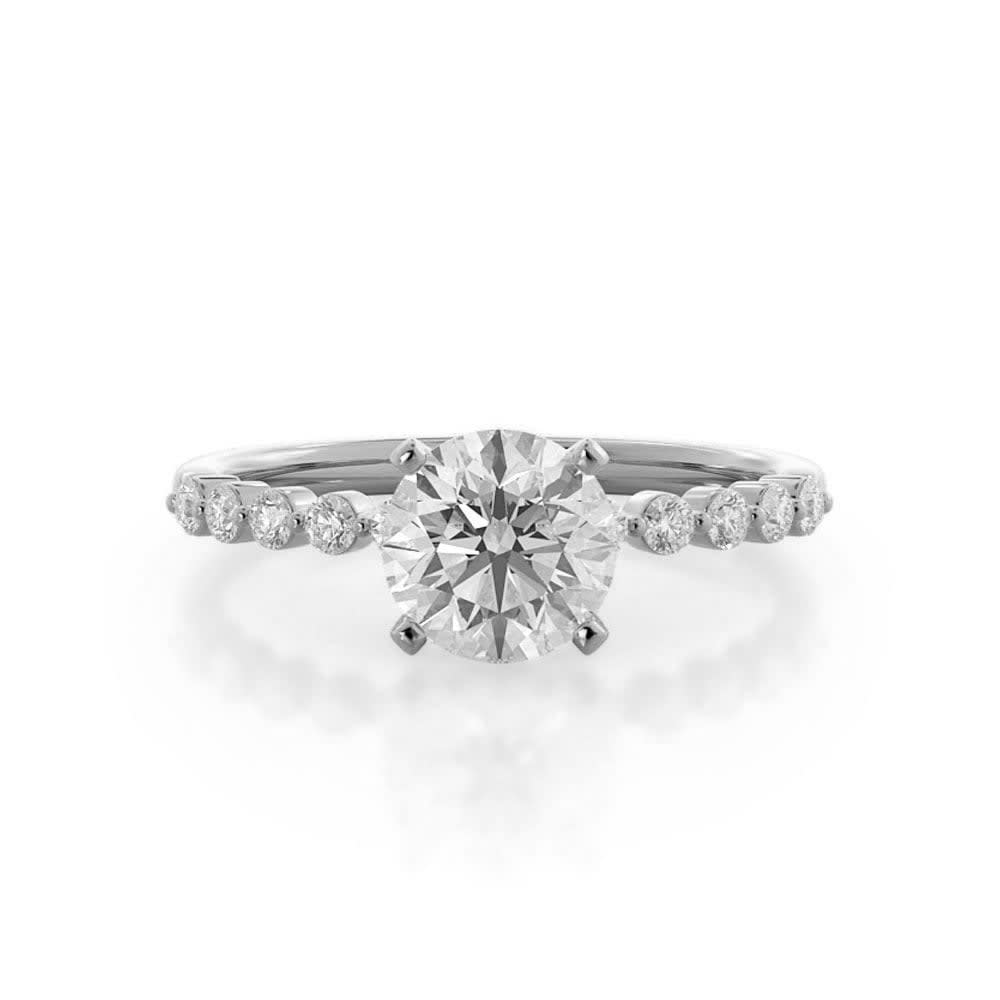 This women.s engagement ring features a stunning claw set lab grown brilliant round cut diamond at its centre, flanking the centre diamond on either side are five round diamonds that are bezel set into the ring. These diamonds add extra brilliance and interest to the design, while also helping to highlight and enhance the beauty of the focal stone. All Temple and Grace jewellery is beautifully crafted to the highest standards and is made at our jewellery workshop directly by us (skilled jewellery craftsmen). This is why you can save over 40% when compared to high-street retail prices. We also offer a lifetime warranty and unmatched 100 day returns. You can shop online or book an appointment to visit our jewellery boutiques in Sydney, Melbourne, Brisbane and Perth.