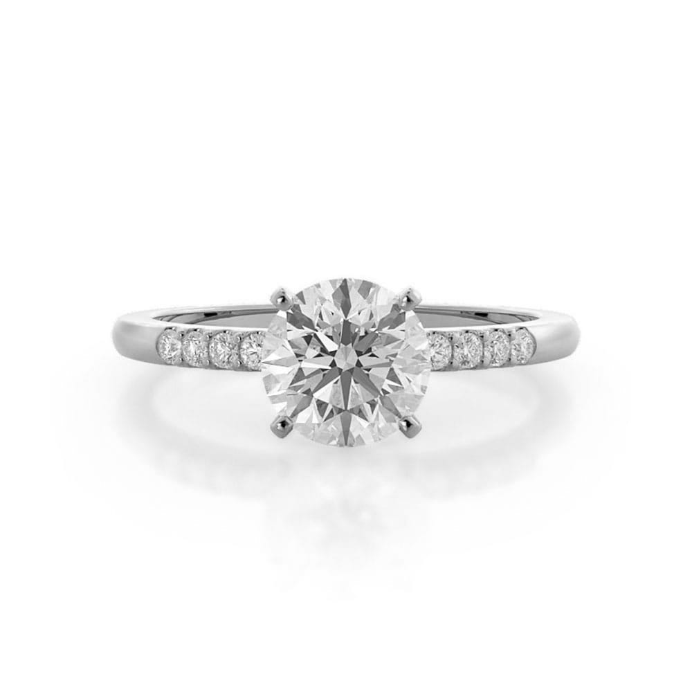 This astonishing women's wedding ring features a lab grown round brilliant cut diamond as the centre stone. The diamond is set in a classic claw setting that allows maximum light to enter and let the diamond glitter more. The shank is adorned with smaller lab grown diamonds in a pave setting that enhances the overall design. All Temple and Grace jewellery is beautifully crafted to the highest standards and is made at our jewellery workshop directly by us (skilled jewellery craftsmen). This is why you can save over 40% when compared to high-street retail prices. We also offer a lifetime warranty and unmatched 100 day returns. You can shop online or book an appointment to visit our jewellery boutiques in Sydney, Melbourne, Brisbane and Perth.