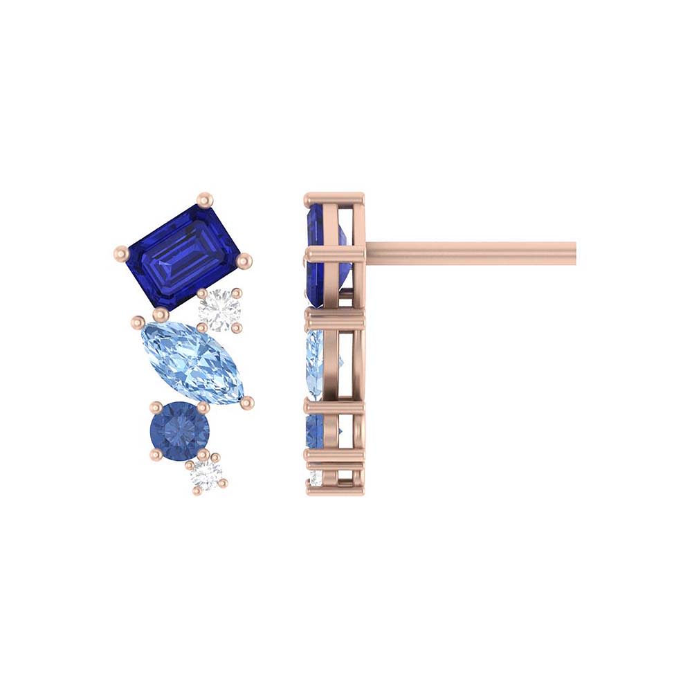 Stunning and unusual earrings set with natural gemstones, Sapphire, London Blue Topaz and Light Blue topaz and a touch of diamonds. These earrings are unique design for you to wear everyday and any occasion as these colours match with anything you may wear. A wonderful gift idea to give to a love one or to oneself. Made by our professional jewellers with their brilliant craftsmanship. Available in. yellow, rose and white gold. Temple and Grace offer lifetime warranty and care for your beautiful pieces. Ask our professional sales advisors for any assistance.