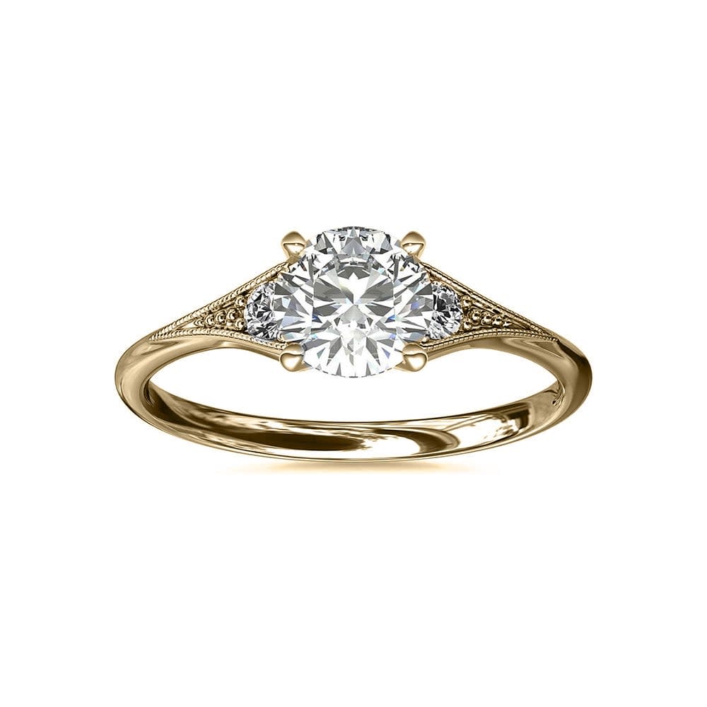 Cheerful and bright, this dazzling diamond band offers a classic look with its intricate pattern. It displays a GIA certified claw set 0.35 carat centre diamond with two pave set round diamonds surrounded by a milgrain edge. The stunning engagement ring will make a lasting impression. This band is available in 18K white, yellow, rose gold, and platinum 950. The jewellery is beautifully handmade to the highest standards. Shop directly from us and save over 40% when compared to high-street retail prices. We also offer unmatched 100 day returns. Buy online or book an appointment to visit our jewellery boutiques in Sydney and Melbourne.