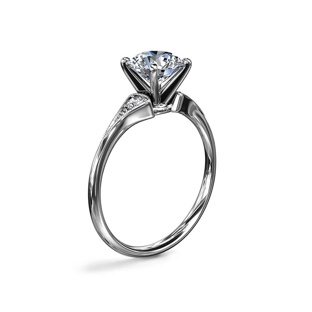Cheerful and bright, this dazzling diamond band offers a classic look with its intricate pattern. It displays a GIA certified claw set 0.35 carat centre diamond with two pave set round diamonds surrounded by a milgrain edge. The stunning engagement ring will make a lasting impression. This band is available in 18K white, yellow, rose gold, and platinum 950. The jewellery is beautifully handmade to the highest standards. Shop directly from us and save over 40% when compared to high-street retail prices. We also offer unmatched 100 day returns. Buy online or book an appointment to visit our jewellery boutiques in Sydney and Melbourne.