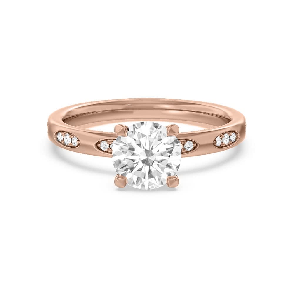 This women's engagement ring features a stunning natural round brilliant diamond at it's centre. It is set in a classic four prong setting, which highlights the beauty and brilliance of the stone. It boasts polished shoulders with grooves which have sparkling stone embedded on them. It is classic and timeless, making it a perfect choice for special occasion. All Temple and Grace jewellery is beautifully crafted to the highest standards and is made at our jewellery workshop directly by us (skilled jewellery craftsmen). This is why you can save over 40% when compared to high-street retail prices. We also offer a lifetime warranty and unmatched 100 day returns. You can shop online or book an appointment to visit our jewellery boutiques in Sydney, Melbourne, Brisbane and Perth.
